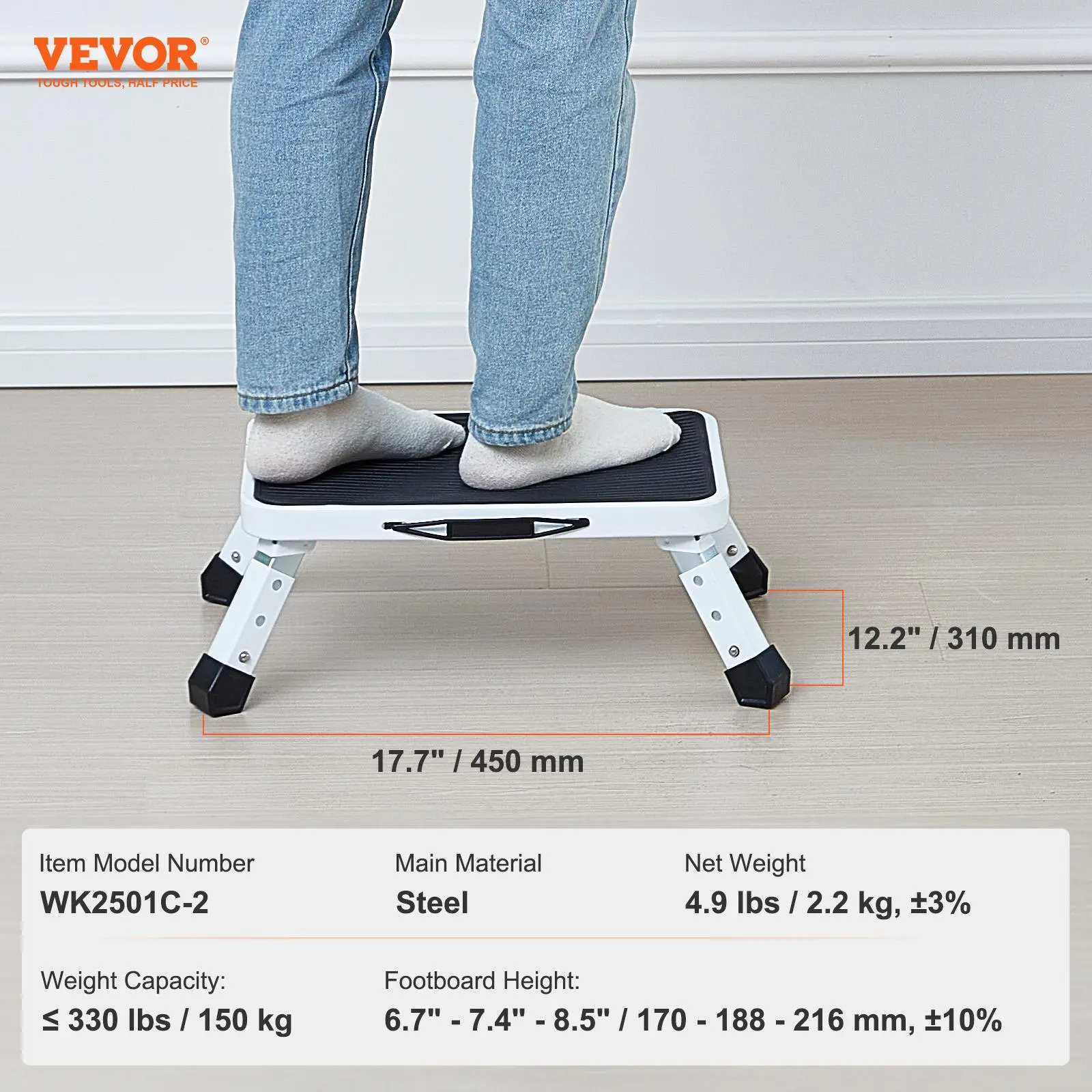 • Three-Stage Height Adjustable: This household step stool ladder features a three-stage height adjustment: 6.7" - 7.4" - 8.5" / 170 - 188 - 216 mm, with hole positioning locks providing an easy way to adjust the height while keeping the stool stable. It's perfect for individuals of different heights, especially seniors or adults in need, and it's crucial for children, as every inch of elevation matters.