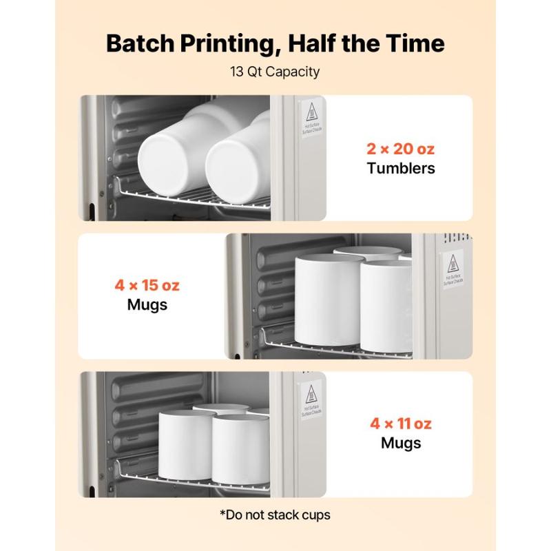 VEVOR Sublimation Oven Machine, 13 Qt, Fits 20oz Tumblers, with 1 Heat Air Gun, 50 Shrink Films, 1 Tape and 2 Heat Gloves, Oven for Sublimation Blank Tumblers, Mugs, Bowls, Off - WhiteVEVOR Sublimation Oven Machine, 13 Qt, Fits 20oz Tumblers, with 1 Heat Air Gun, 50 Shrink Films, 1 Tape and 2 Heat Gloves, Oven for Sublimation Blank Tumblers, Mugs, Bowls, Off-White Higher Efficiency in Every Batch Consistent Transfer Quality Beginner-Friendly Design Compact &