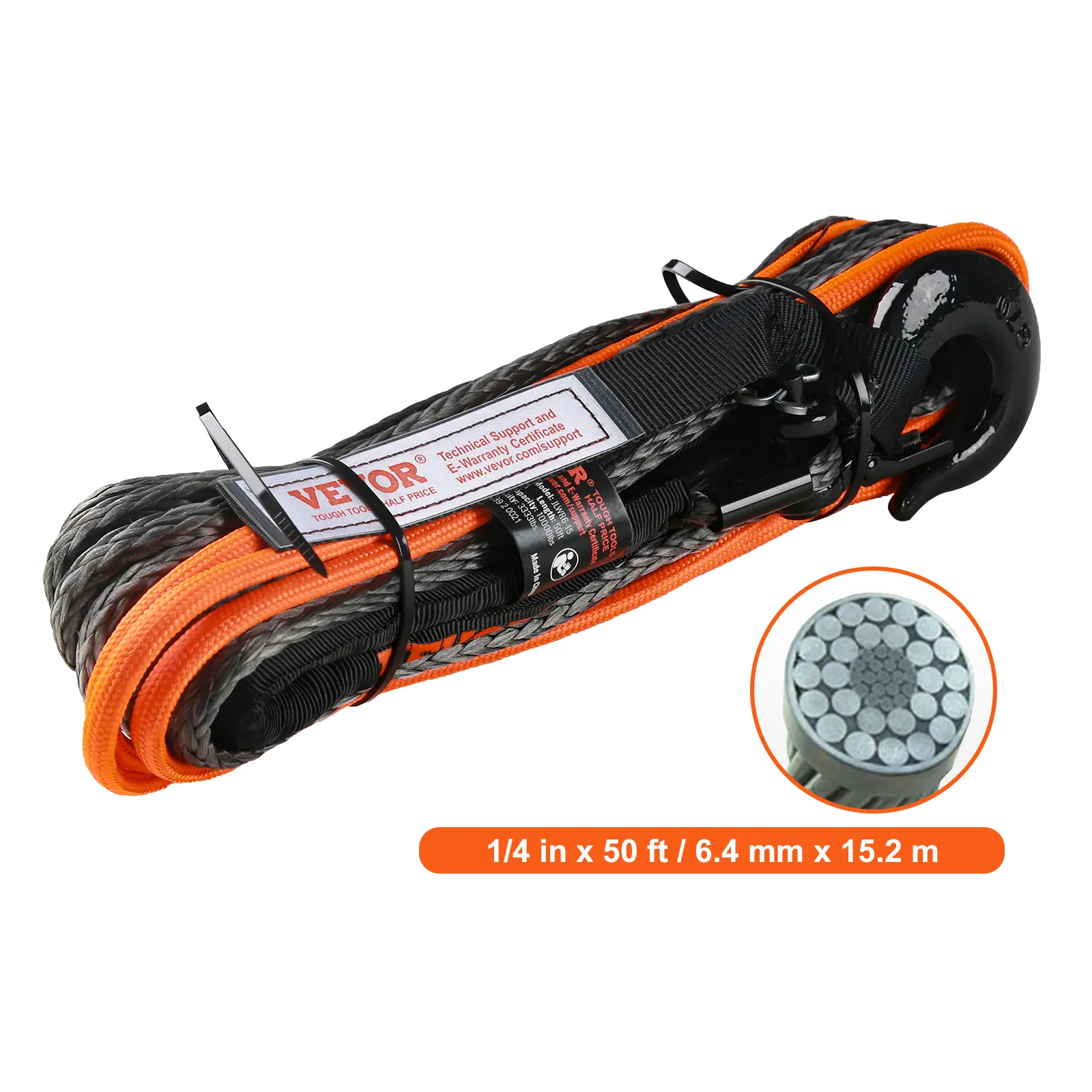 • Unique Design at Both Ends: Double the protection, double the durability! Our synthetic winch rope starts with a 5 ft/1.5 m nylon protective sleeve to shield against rough edges, and ends with a 6 ft/1.8 m orange warning sleeve as a smart reminder of your winching limit.