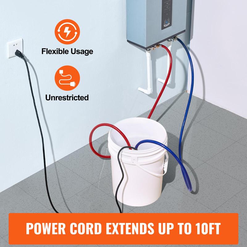 • Complete Accessories: This flushing kit includes a water pump, two water hoses, a bucket, a plastic wrench, two adapters, and descaling powder, providing everything needed for flushing water heaters.