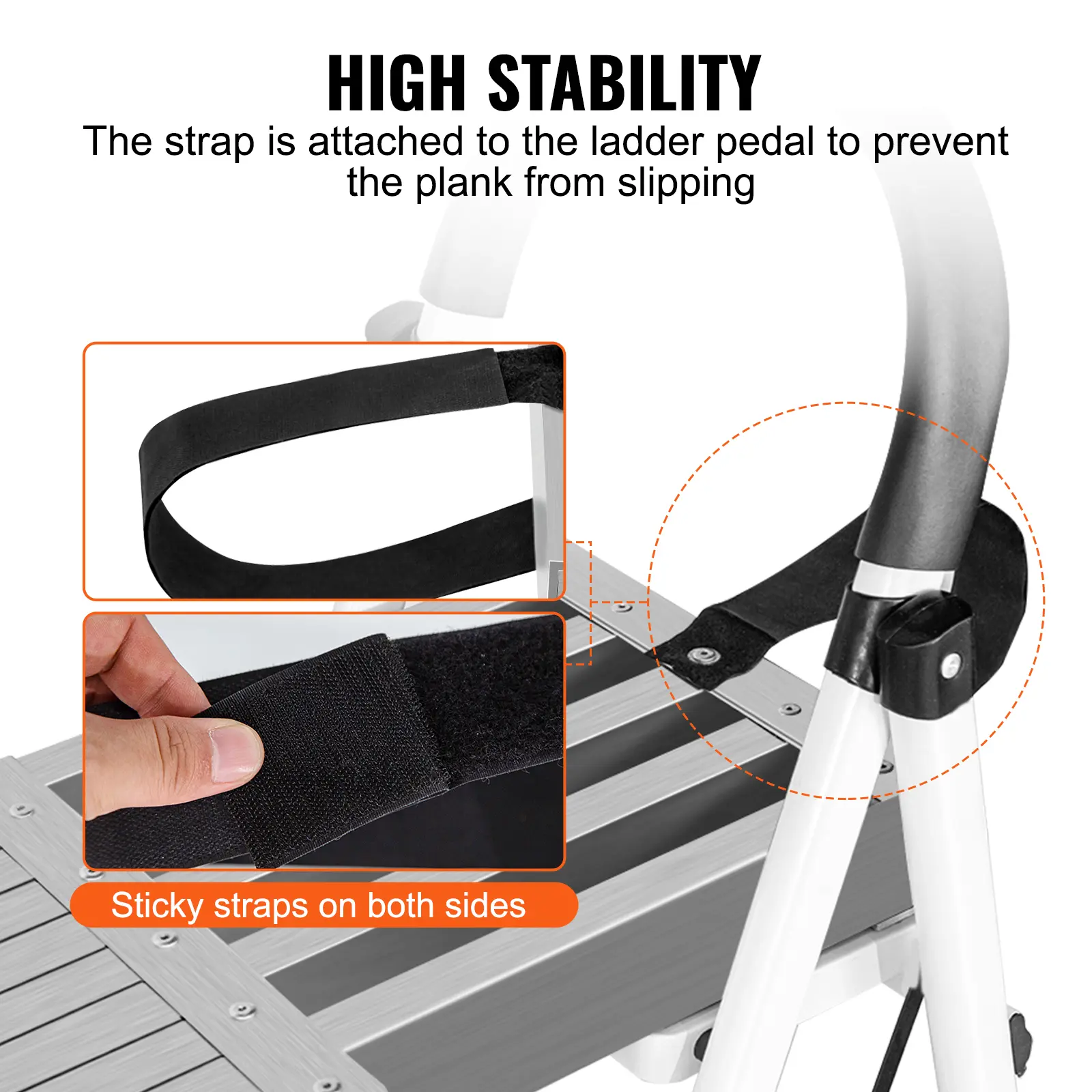 • Nylon Sticky Straps: We are always concerned about your security. So the aluminum plank features a sticky strap to avoid slipping off the ladder. And a non-slip surface to increase friction to avoid accidents.