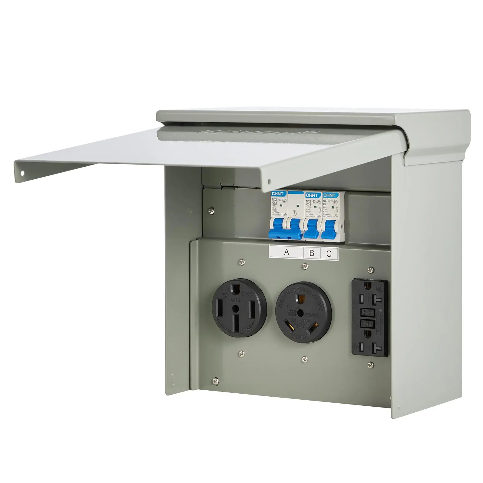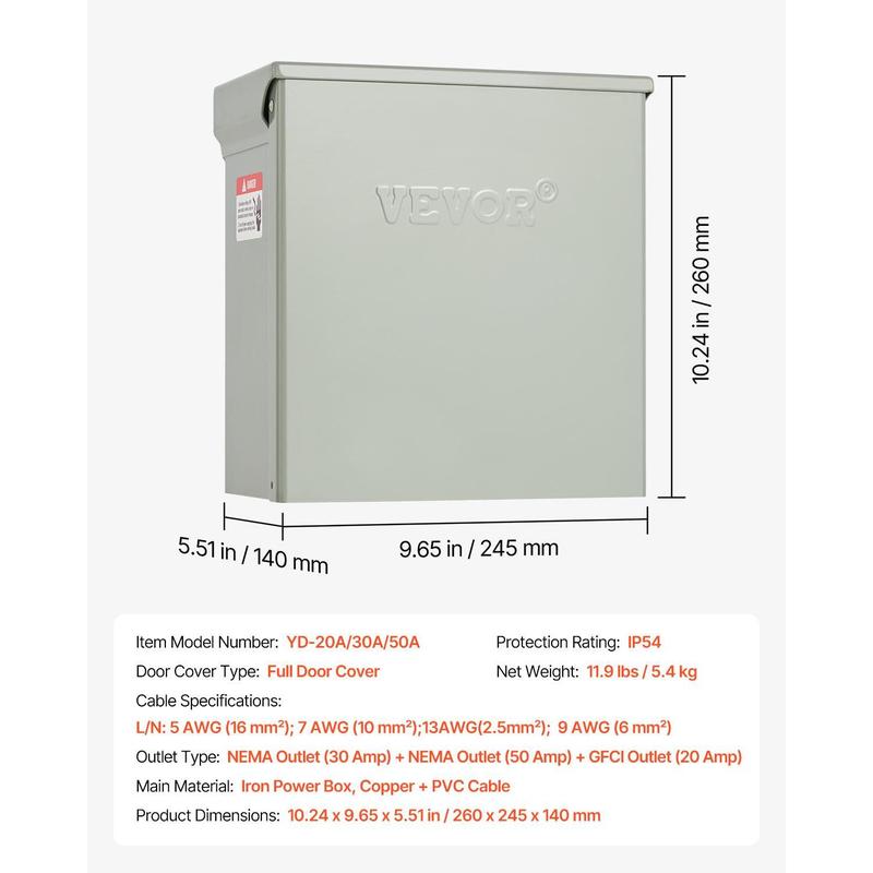 • IP54 Waterproofing, Security First: Don’t let rain dampen your plans! Our RV EV receptacle panel features an IP54 waterproof rating and WR (Weather-Resistant) outlets that automatically disconnect when in contact with water.