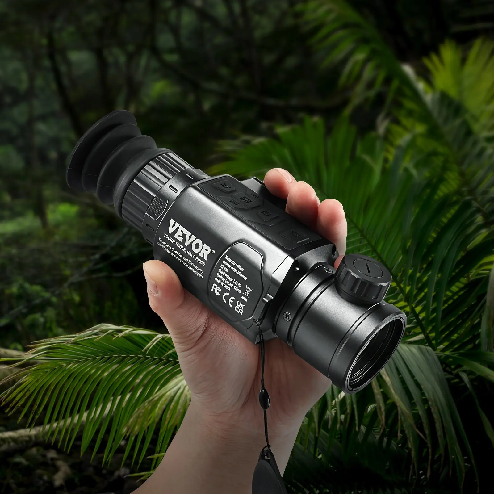 High-Resolution Thermal Imager: Say goodbye to hidden problems with VEVOR thermal imager monocular, featuring a 384x288 thermal imaging resolution.It's all about quick visual inspections and spotting temperature variations.Say hello to detecting structural problems and identifying blockages.4-Level Digital Zoom: Zoom in and explore the tiniest details with the 1X, 2X, 4X 8X magnification.Whether you're adventuring, wildlife watching, or tending livestock, this thermal imager has your back for crystal-clear and detailed images.0.39" OLED Display: Featuring a 0.39-inch OLED screen, our thermal imager delivers sharp visuals and high contrast.This makes images appear more vivid and clear for easier observation and analysis.It also supports hotspot tracking, photo capture, and video recording in both JPG and MP4 formats, greatly enriching the user experience.≥ 5 Hours of Battery Life: Enjoy over 5 hours of continuous use without constant recharging.It utilizes a 1400mAh high-capacity battery, and DOD ≥80% after 500 charge and discharge cycle.Additionally, it offers 4 automatic power-off time options: 5 min, 20 min, 30 min, or no auto shutdown.Thoughtful Details: Built-in 16GB EMMC allows for vehicle video recording and image capture.It also supports multiple languages switch for smoother detection.IP54 waterproof and shockproof features enhance durability and reliability.Furthermore, it supports picture-in-picture for finer target detail inspection.VEVOR Thermal Imager Monocular Hunting Imaging Telescope 1X -8X Zoom 0.39" OLED Scrren