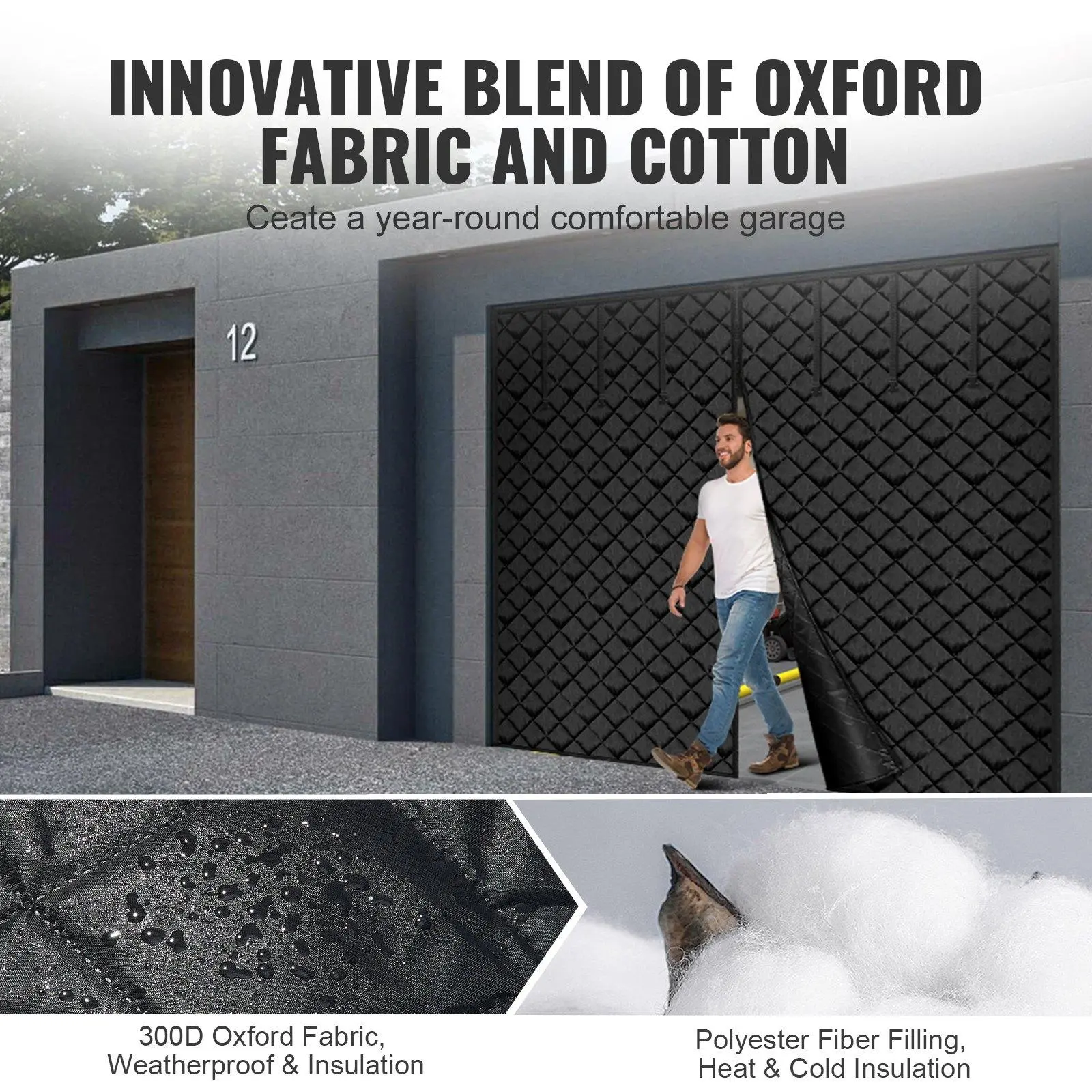 ·300D Oxford Fabric, Advanced Insulation: Crafted from premium 300D Oxford fabric combined with quality cotton, our garage door screen for winter offers superior thermal resistance. Precision stitching and reinforced edges avoid tearing and withstand harsh weather, ensuring year-round energy savings by keeping your space warm in winter and cool in summer.