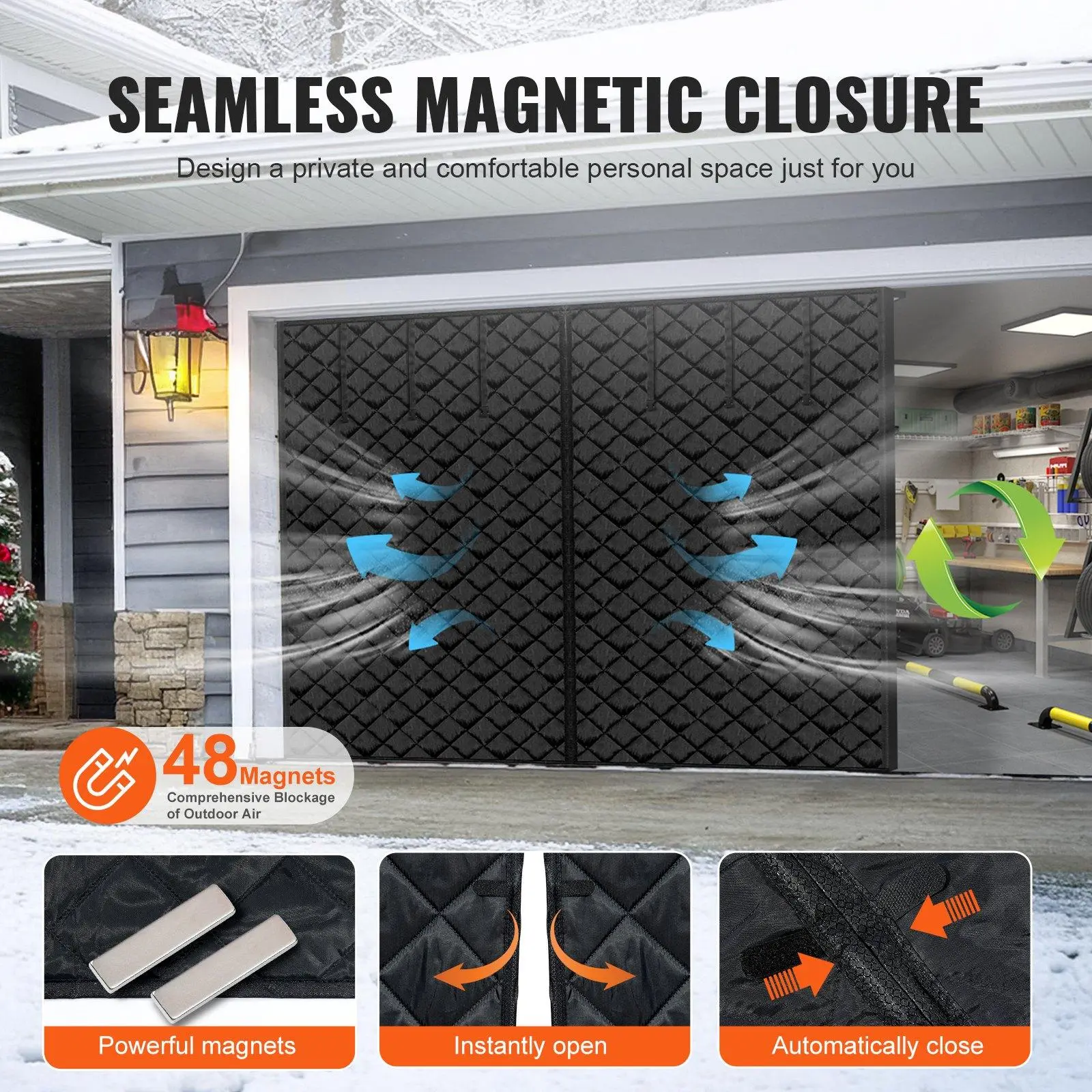 ·Superior Magnetic Sealing System: Experience unmatched sealing with our enhanced magnet design! The magnetic thermal insulated door curtain closes seamlessly, blocking out drafts and maintaining your desired indoor temperature. Enjoy a warmer, more comfortable garage while enhancing your home's privacy and comfort.