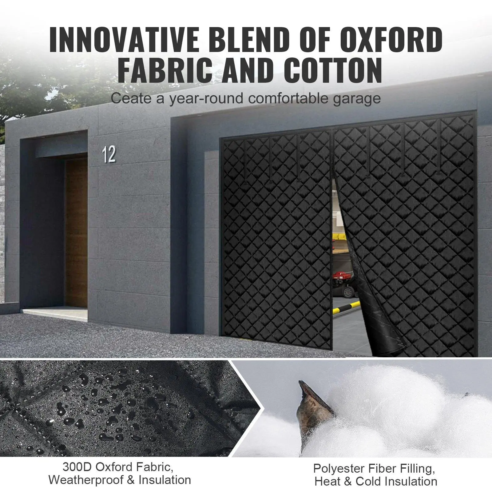 ·300D Oxford Fabric, Advanced Insulation: Crafted from premium 300D Oxford fabric combined with quality cotton, our garage door screen for winter offers superior thermal resistance. Precision stitching and reinforced edges avoid tearing and withstand harsh weather, ensuring year-round energy savings by keeping your space warm in winter and cool in summer.