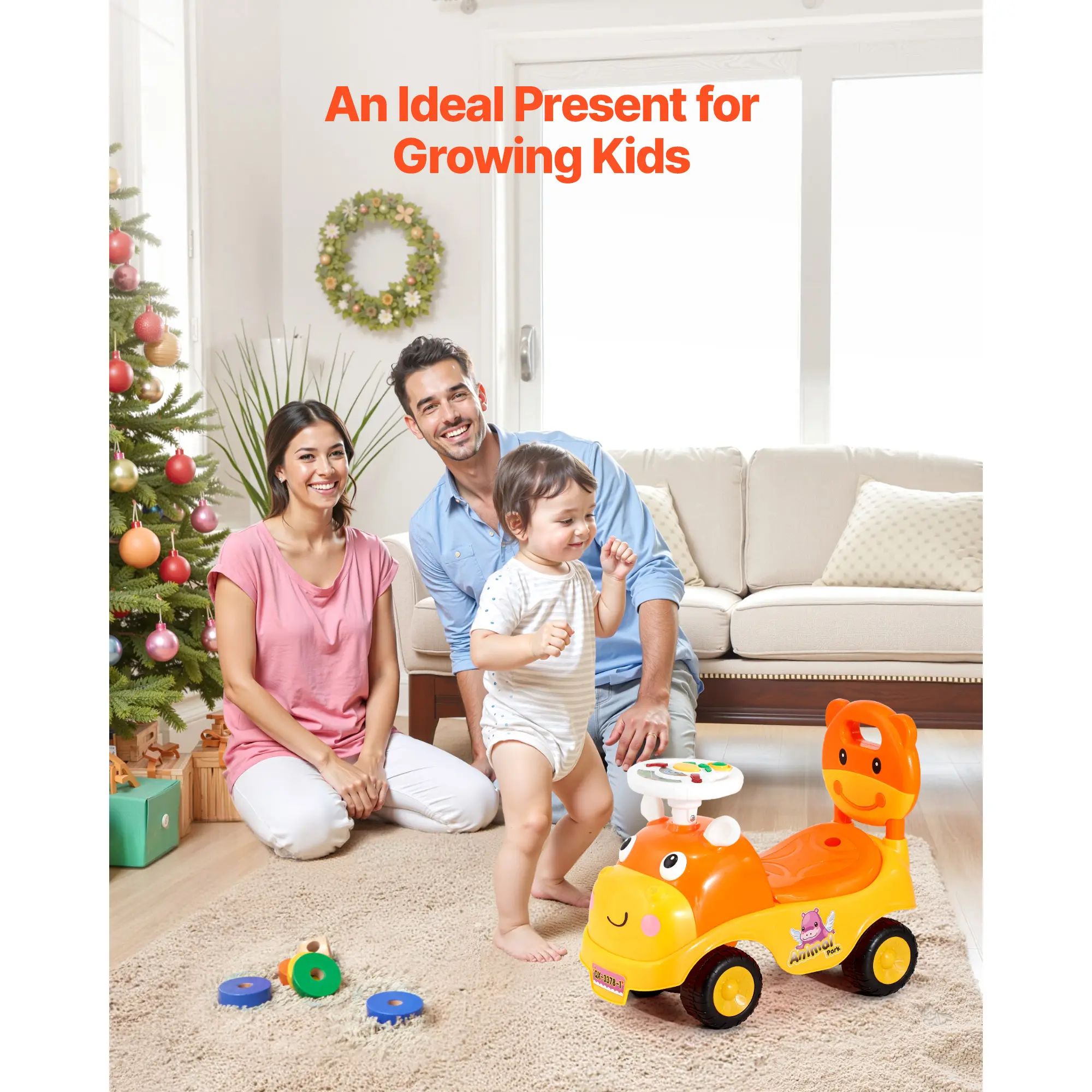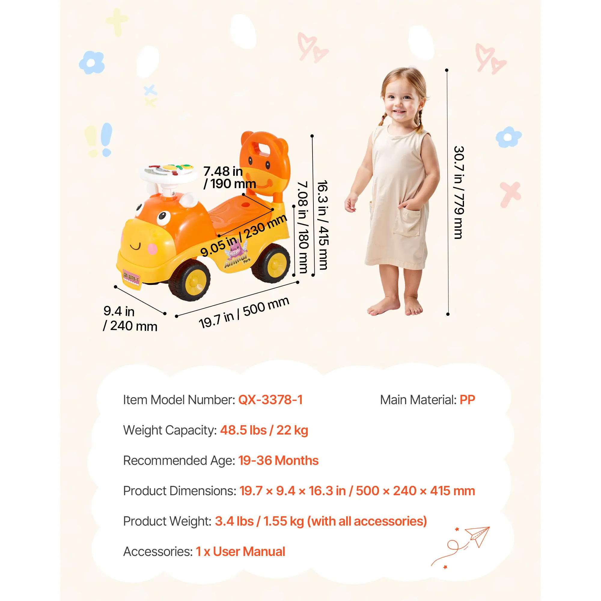 • Convenient Storage: The hidden storage under the seat of the ride on toy holds essentials like snacks, diapers, and toys, teaching kids self-organization while meeting their needs during playtime or outings