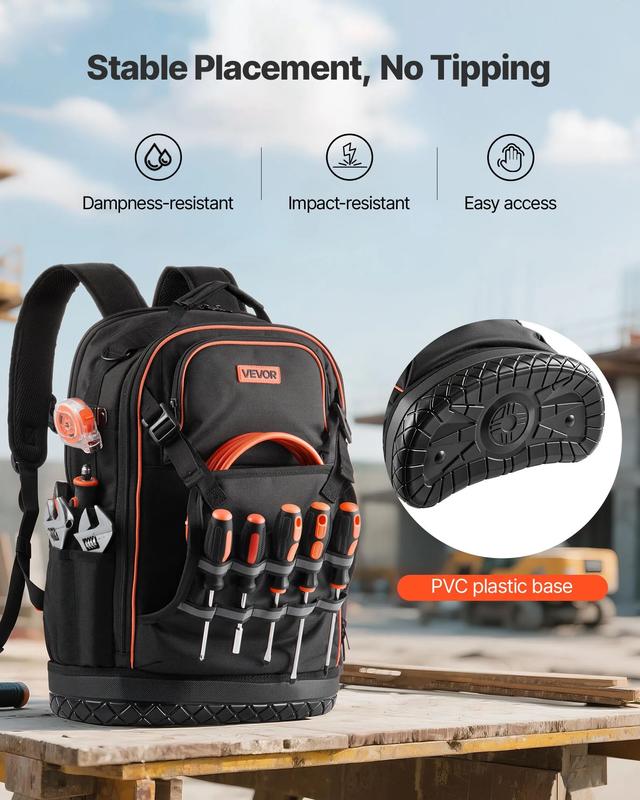 ·Stable Base for Easy Access: The PVC base keeps your electrician jobsite backpack steady, even when full! Place it anywhere without worrying about tipping or damage. It’s built to resist impacts, dampness, and sharp objects—protecting your tools all day long