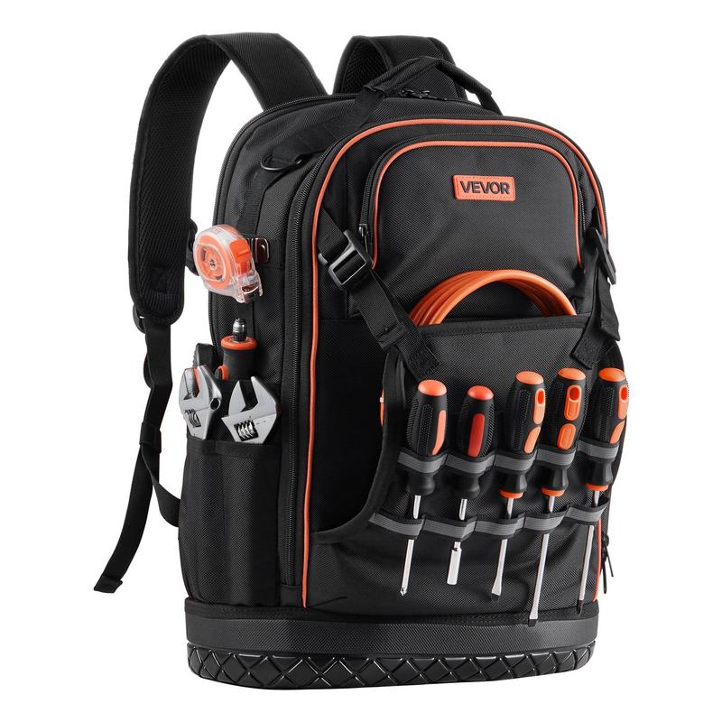 • 65 Pockets for Organization: This tool backpack (14.56 x 7.67 x 20.47 inches) holds up to 70 lbs and features 65 pockets, including a removable divider. Ideal for wrenches, drills, and more! Plus, it has a laptop compartment and transparent pouch to keep your gear secure from damage or loss