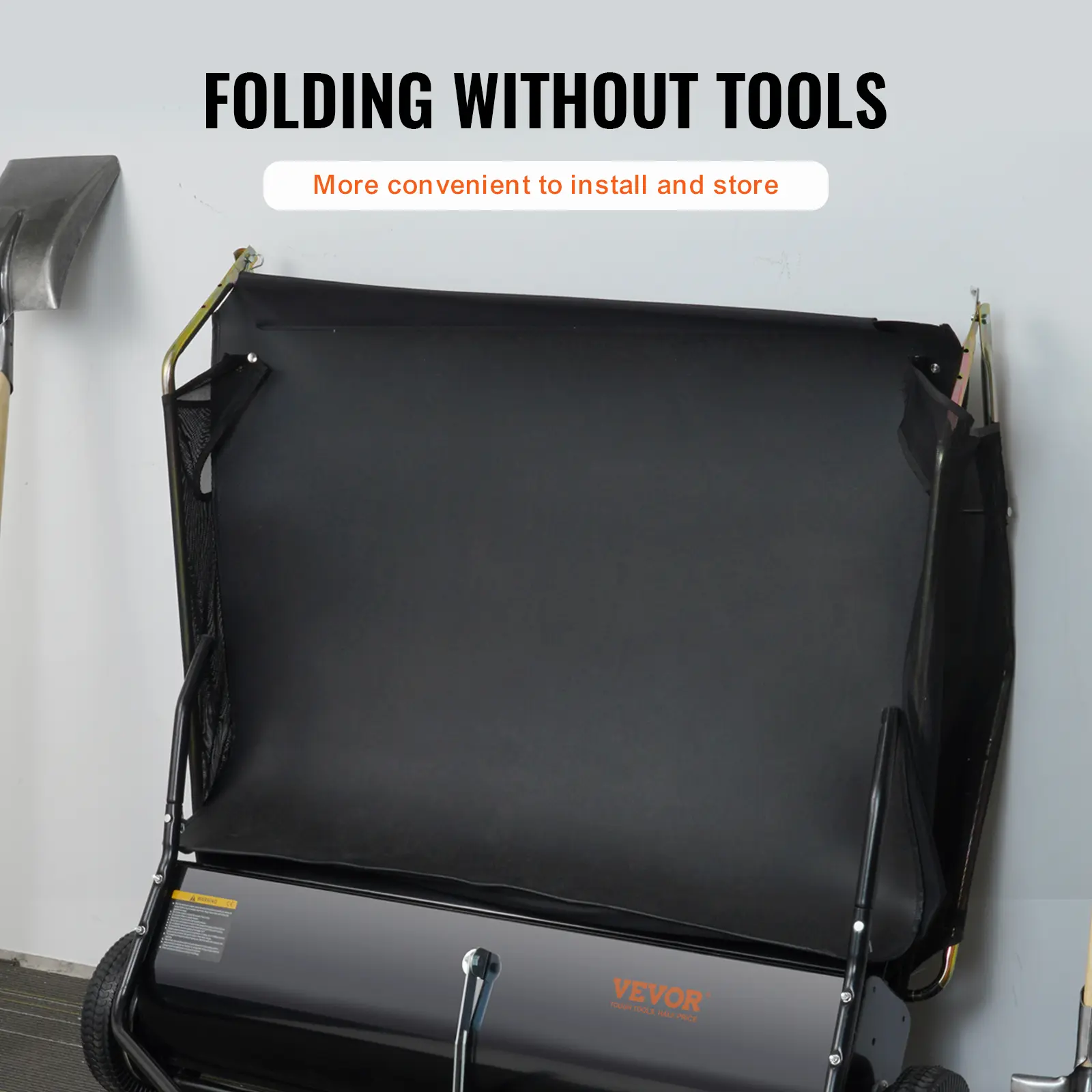 • Store the heavy-duty sweeper effortlessly with its innovative folding design. Tuck it into a shed or hang it on a garage wall. Save valuable space without the hassle. Perfect for compact storage solutions.