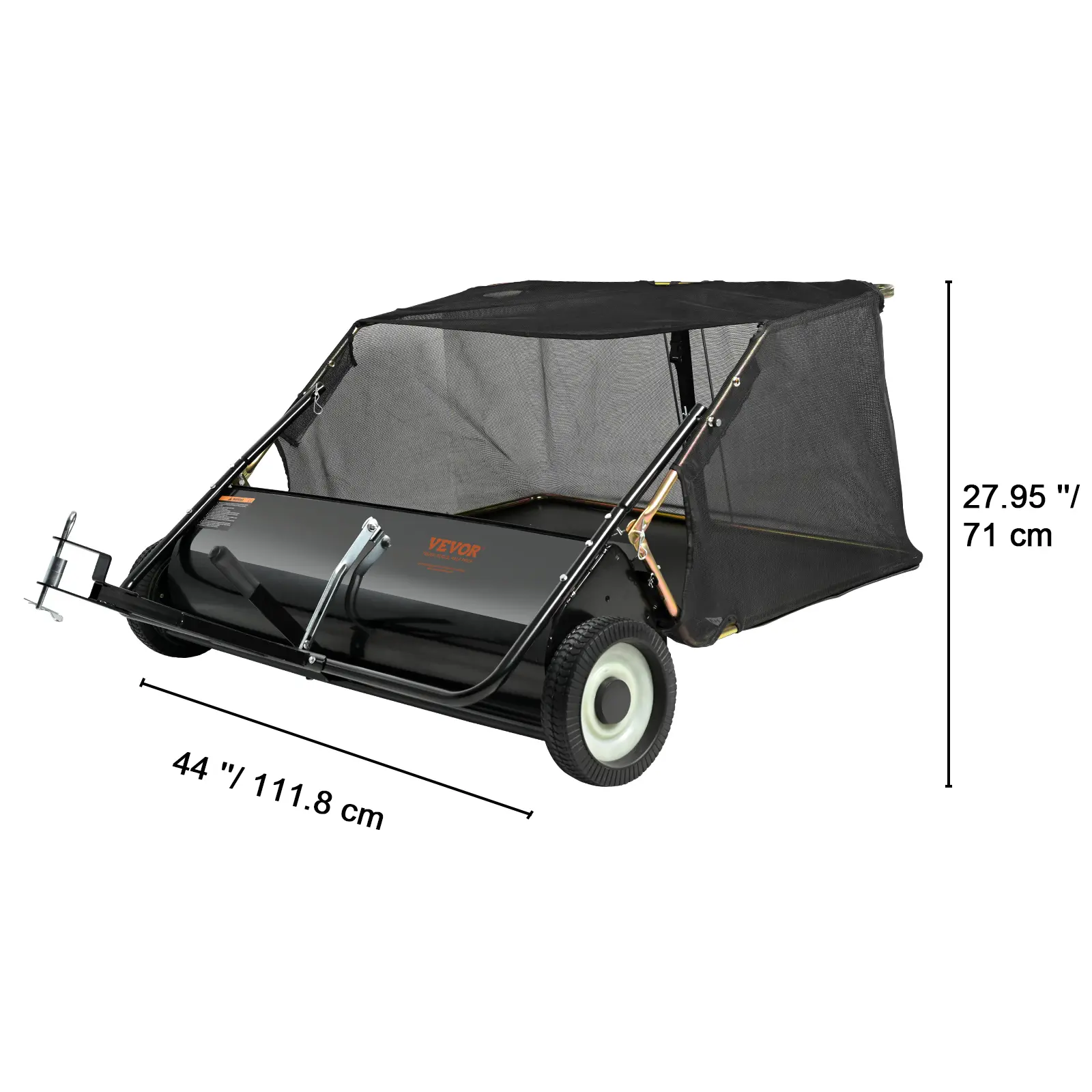 • Unlike standard models, this sweeper has a widened metal-brush interface for enhanced power and durability. It boasts a 44"/108 cm sweeping width, picking up 80% of debris in one pass. Keep your lawns spotless effortlessly.