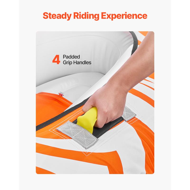 • Stable and Comfortable Ride: The towable tubes for boating 2 person is designed for comfort and safety, featuring 4 padded grip handles for a more comfortable and safe holding. The sturdy handles ensure you stay in control, providing a stable and secure water experience.