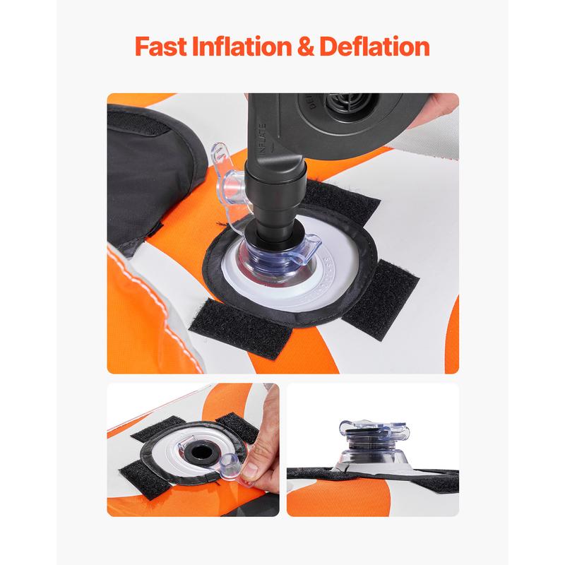 • Quick Inflation & Deflation: Featuring a secure air valve for airtight sealing, this towable tube inflates and deflates quickly, taking less than 10 minutes. After deflation, it folds easily for convenient storage and transport, eliminating the need to stow it on a roof rack.