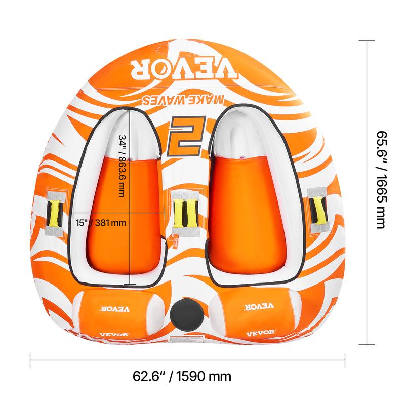 • Thrilling Water Fun: This towable tube for boating has a maximum capacity of 340 lbs (154 kg), featuring 2 independent cockpits with high backrests for added safety - perfectly ideal for adults, kids, and beginners. Its streamlined shape design helps disperse wave impact, ensuring better stability even during sharp turns.