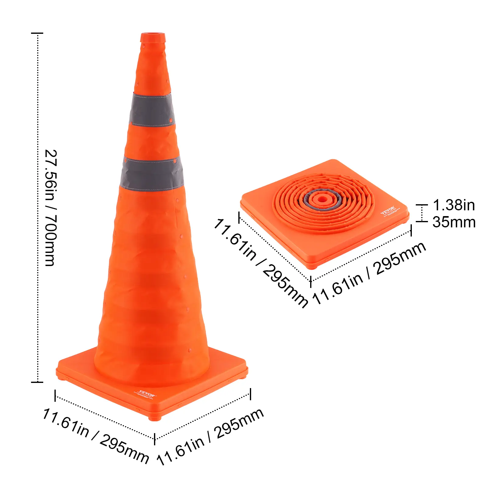 • Sturdy and Reliable: With a base size of 11.61x11.61 inches, these construction cones can be stably placed on various road surfaces, effectively alerting pedestrians and vehicles to exercise caution in all directions.