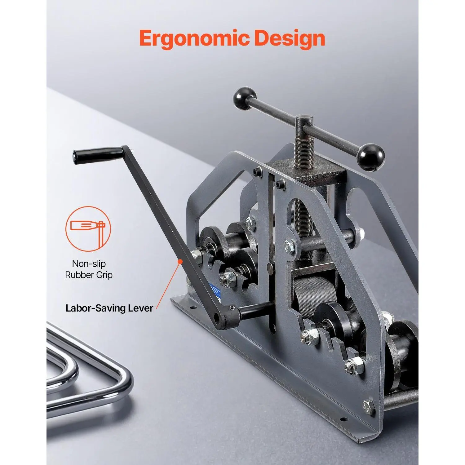 • Ergonomic Design: The manual crank on this pipe roll bender provides precise control and effortless operation, allowing you to bend pipes with ease. Its compact design occupies minimal space, making it perfect for your workshop or job site.