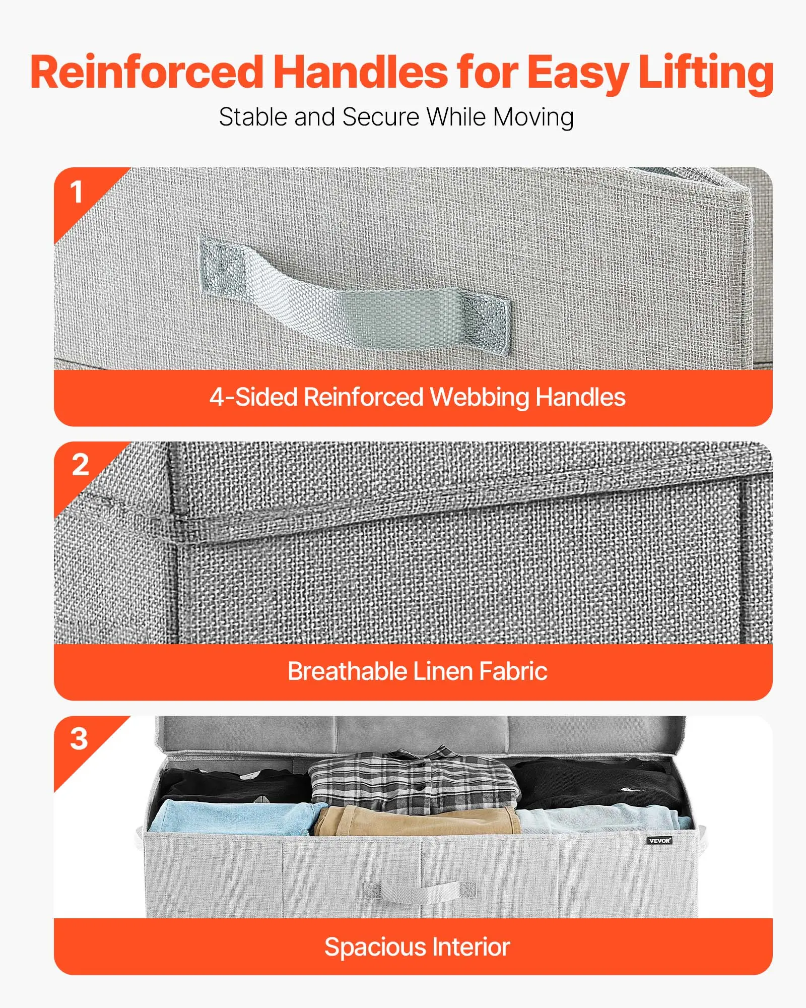Dust-Resistant Design: Our underbed storage features a premium non-woven flip lid with odorless thickened linen fabric for breathability. The reinforced construction enhances pressure resistance and damp resistance, maintaining durability through repeated use to extend lifespan