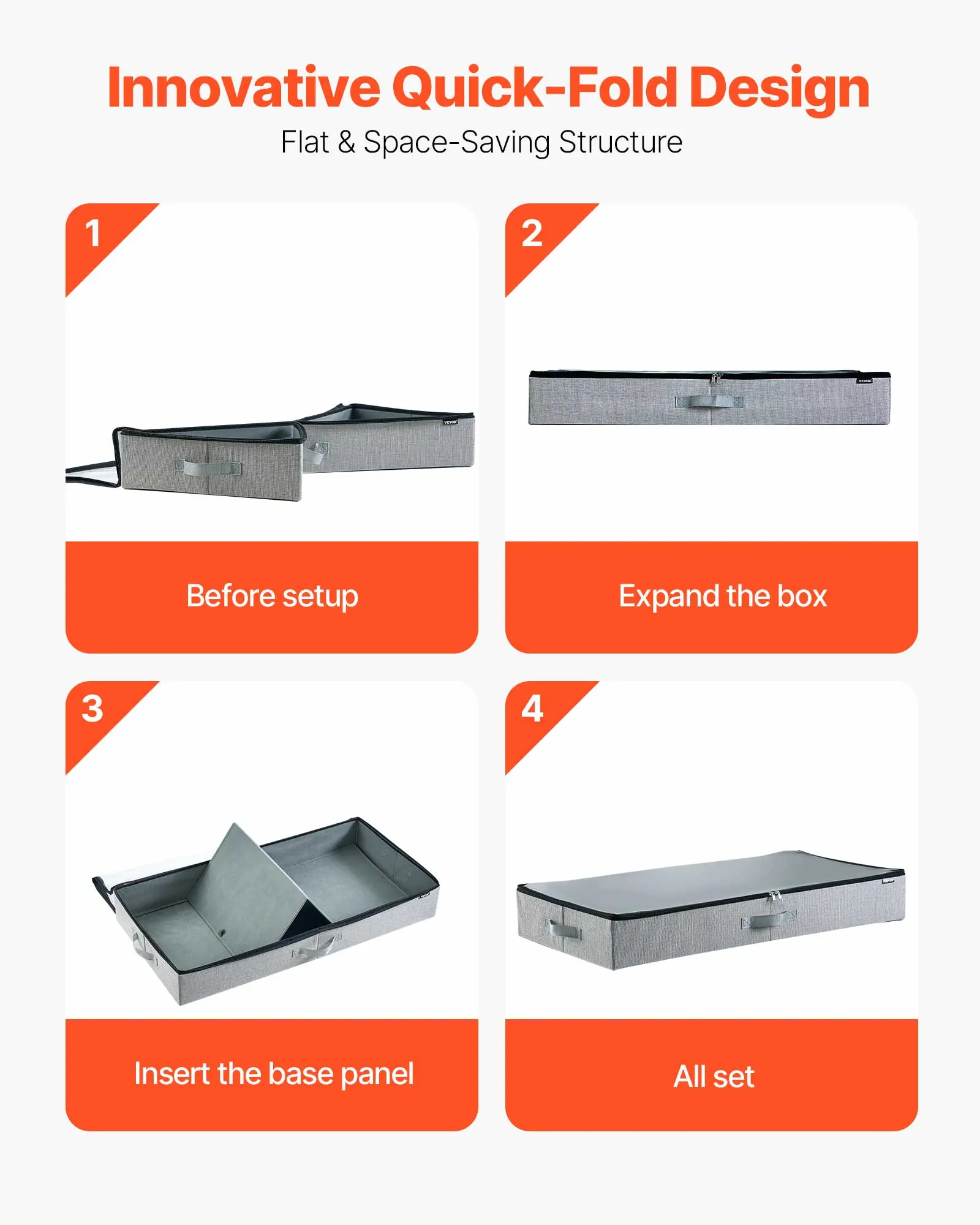 Foldable Design: Featuring an innovative quick-fold design, this under bed clothes storage easily collapses flat, saving storage space. Its double-zippered construction also maximizes under-bed space utilization