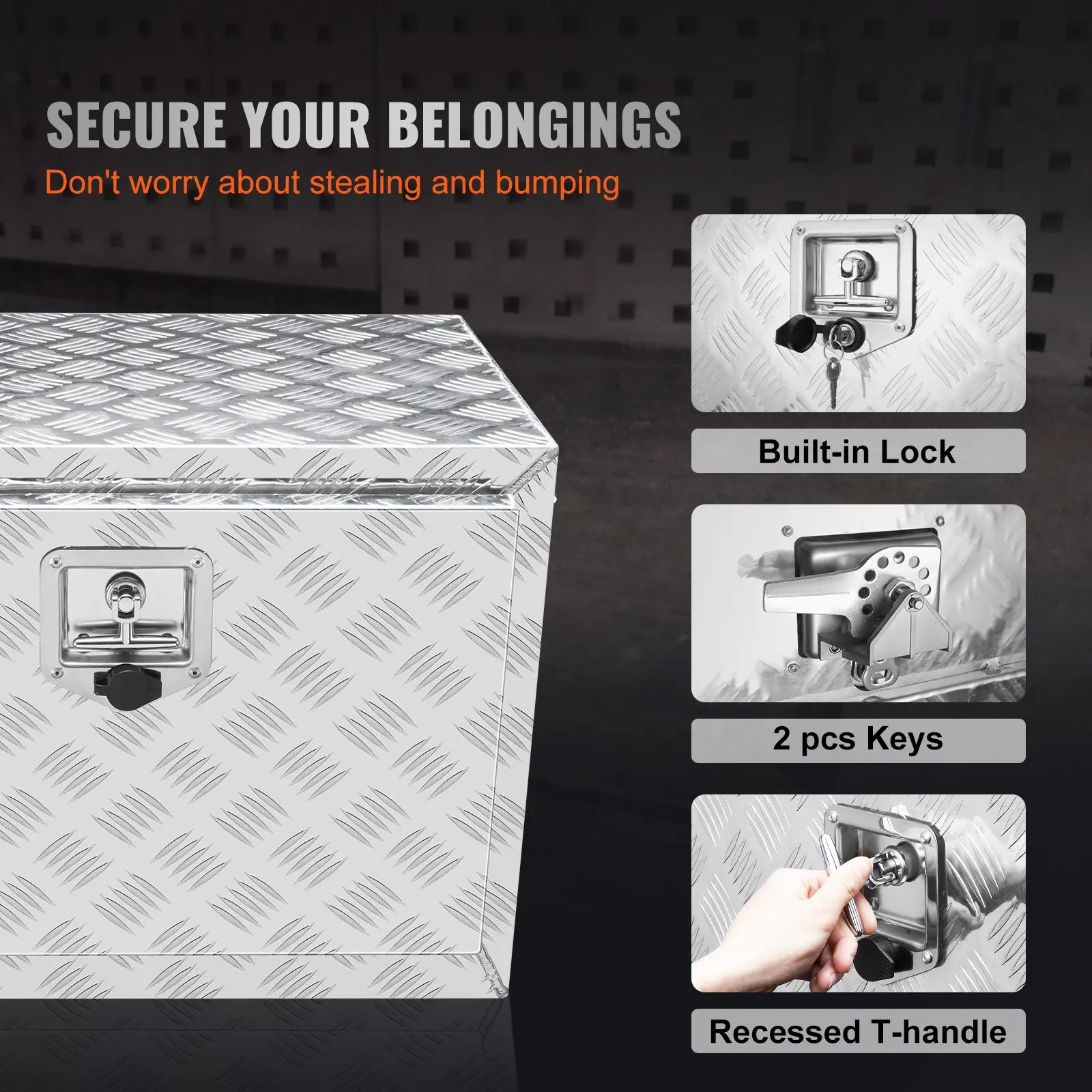 ·All-Purpose Toolbox for Anywhere: Are you tired of being unorganized? The VEVOR underbody tool box can be installed not only on trucks' and trailers' bottoms, but also in different places, such as the back of a camper or pickup rack. You can store all your needs, from maintenance tools to camping equipment, in this truck box and keep everything organized.