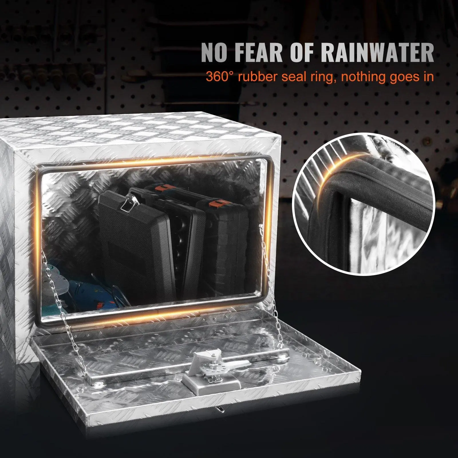 ·All-Purpose Toolbox for Anywhere: Are you tired of being unorganized? The VEVOR underbody tool box can be installed not only on trucks' and trailers' bottoms, but also in different places, such as the back of a camper or pickup rack. You can store all your needs, from maintenance tools to camping equipment, in this truck box and keep everything organized.