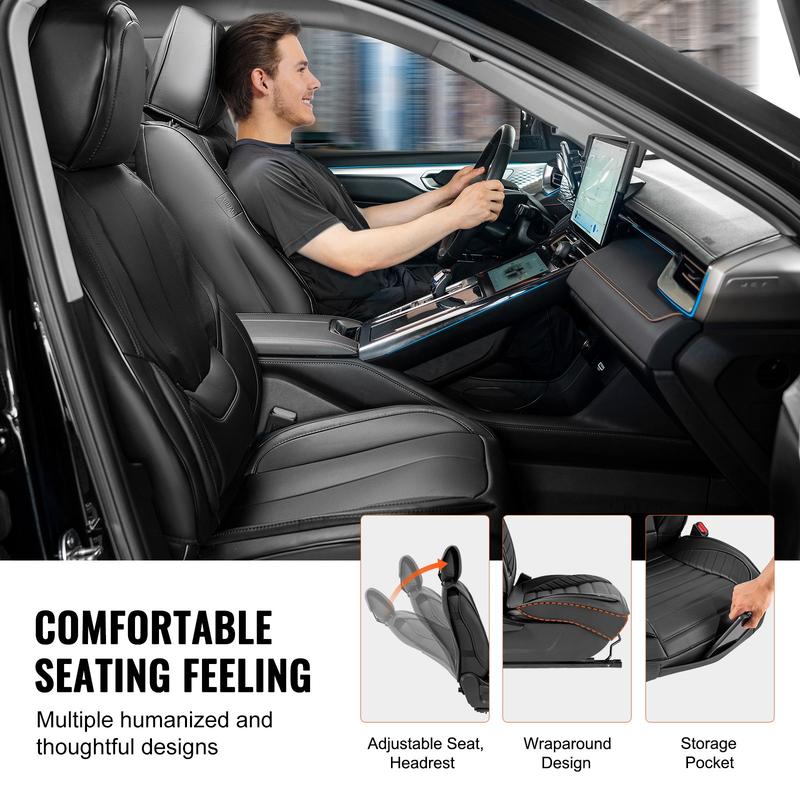Our seat covers are made of premium breathable faux leather, suitable for all seasons. They're easy to clean and dirt-resistant, keeping your car interior tidy. They don't interfere with your airbags, ensuring secure driving, and come with multiple fixtures for secure fitting.