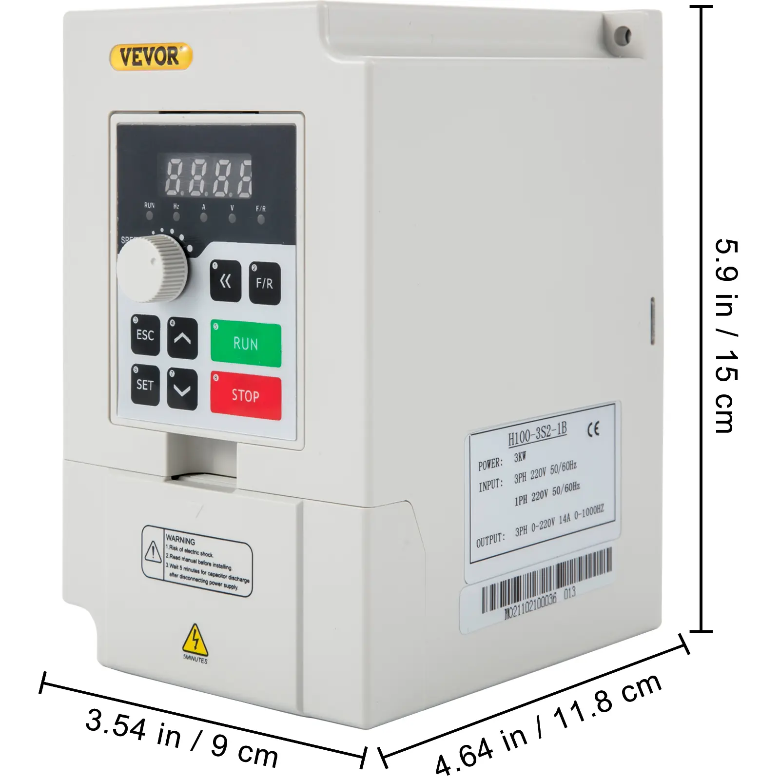• Powerful Function: This variable frequency drive has a 1 or 3 phase input and 3 phase output. Control mode: V/F control and vector control. Frequency setting mode: digital setting, analog setting, serial communication setting (RS485 communication port, adopting standard international MODBUS main circuit control), PID setting (advanced calculus PID closed-loop arithmetic, quick responding speed, and high suitability), etc. Various control techniques by both synchronization and non-synchronization dynamically realize fast starting without changing brakes. Heavy load high torque, 1Hz up to full torque.