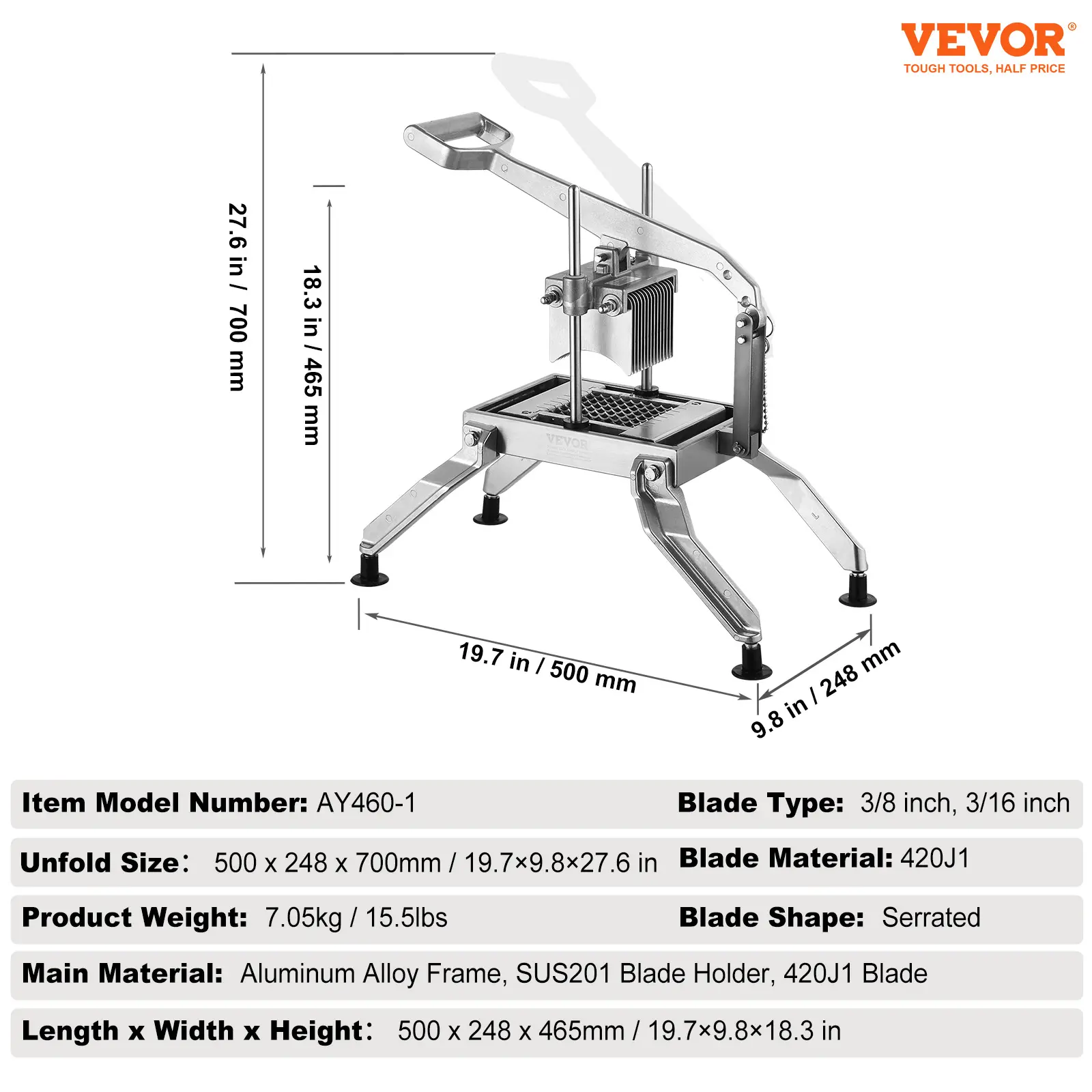 • Efficient and Uniform Slicing: The vertical vegetable slicer is equipped with upgraded sharp 420J1 stainless steel blades with serrated edges, effortlessly slicing fruits and vegetables into uniform 3/8 inch, 3/16 inch sizes.
