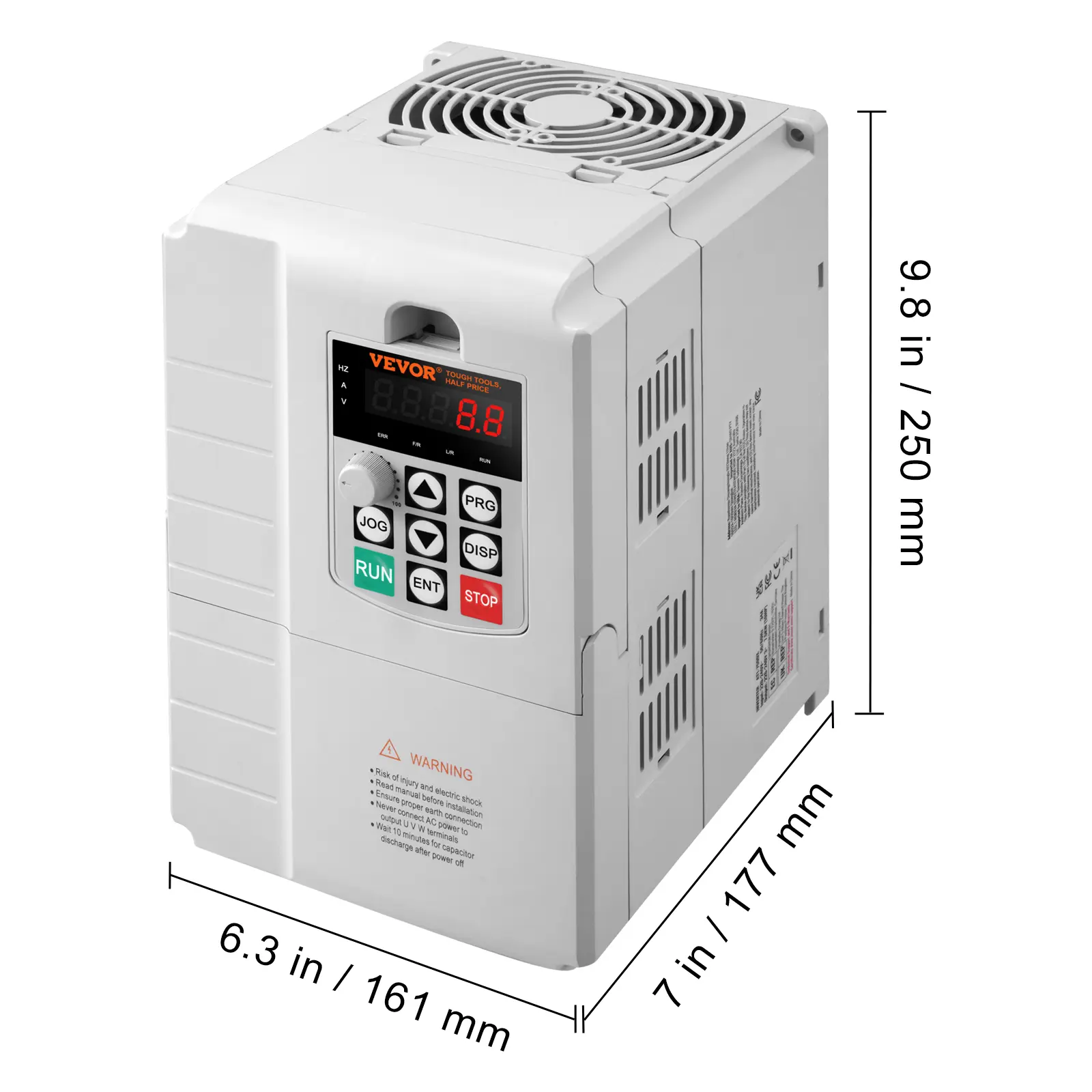 • Unparalleled Quality: VEVOR 7.5KW, 34A, 10HP VFD delivers unmatched quality and power. Offering a single-phase AC 220-240V input and three-phase AC 220V-240V output, it ensures soft start and stops, steady motor control, and energy efficiency. Input Frequency: 50/60Hz ; Output Frequency: 0-400Hz