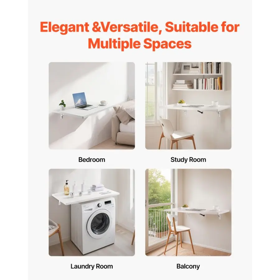 VEVOR Wall Mounted Folding Table, 35.4x 19.7 inches Wall Mount Table, Floating Desk with Iron Bracket, Fold Down Desk for Small Spaces, Home Office, Dining, Laundry Room, Kitchen, Bar, White