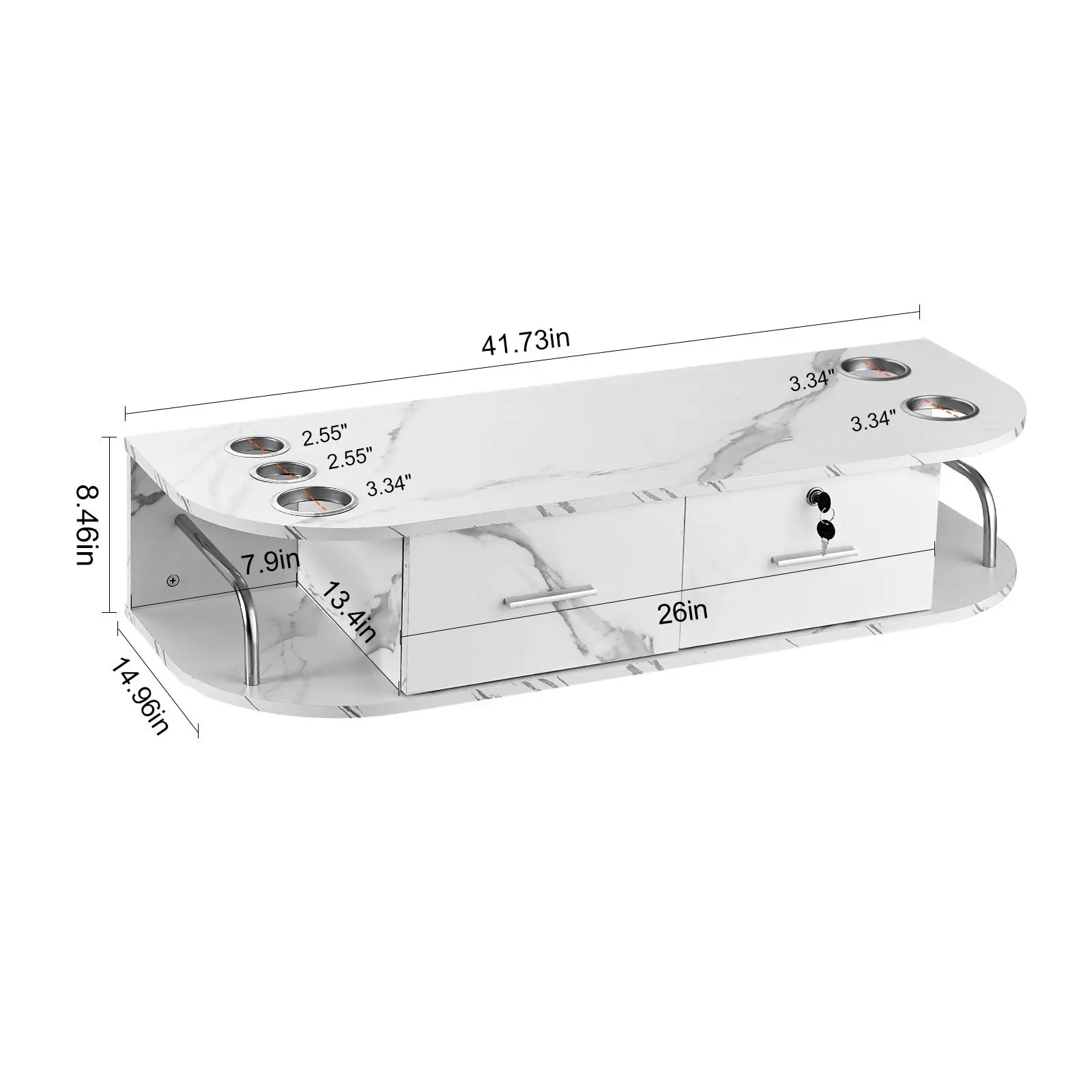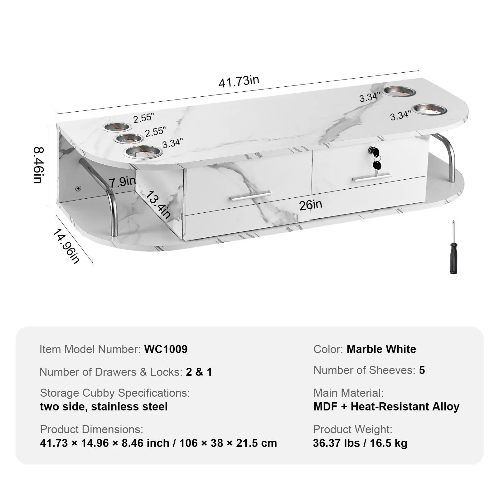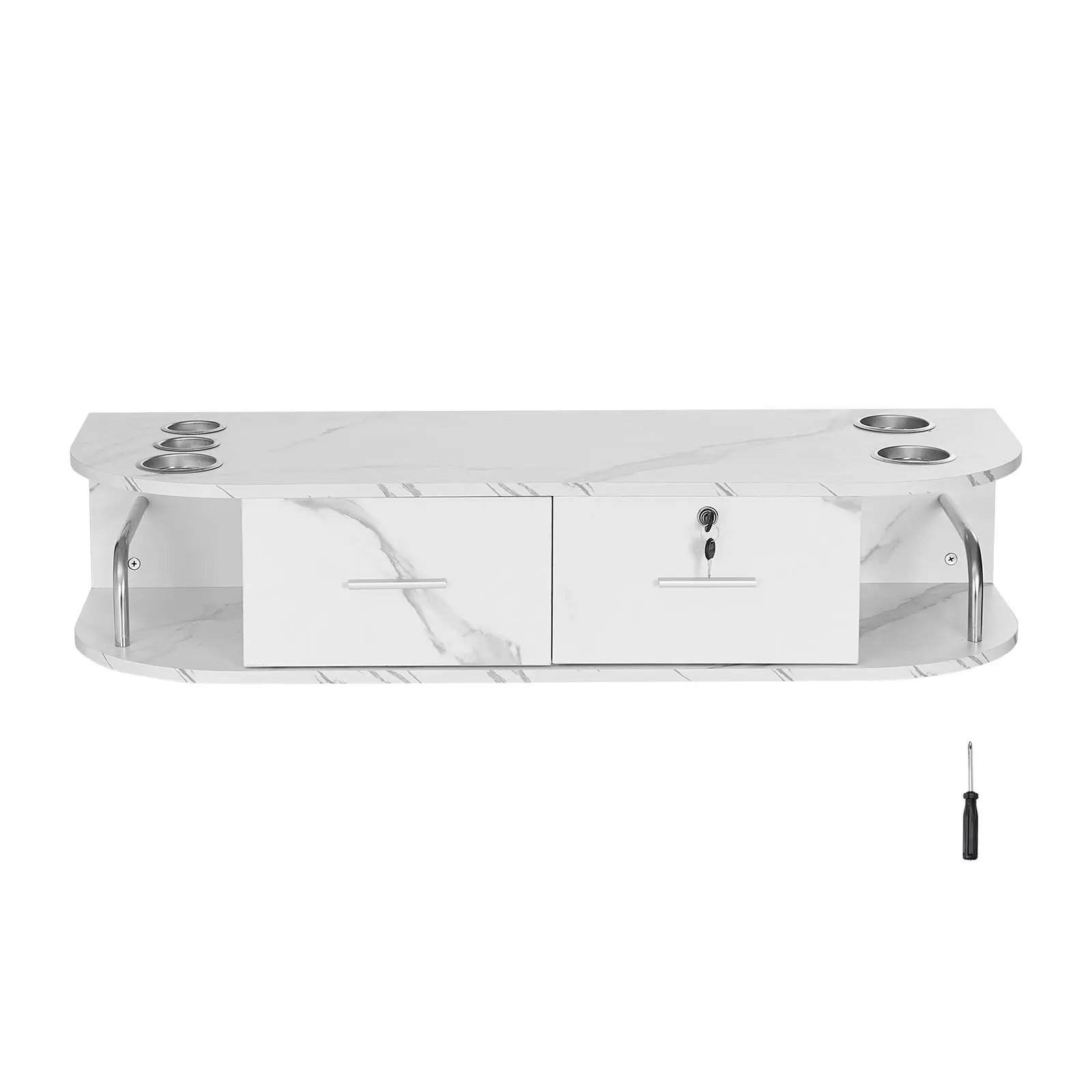 VEVOR Wall-Mounted Salon Station, Equipped with 5 Holders for Hair Dryers, Includes 2 Drawers (One with Lock), Ideal for SPA, Barber Shops, Home & Bathroom Use, in Elegant Marble White