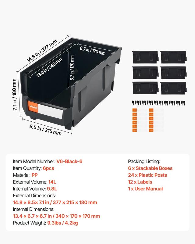 ·Stack It Up, Space-saving: Our plastic stackable bins (14.8 x 8.5 x 7.1 in) are compact yet versatile. Excellent for cabinets, desks, or storage rooms, they help you declutter and match freely based on your needs
