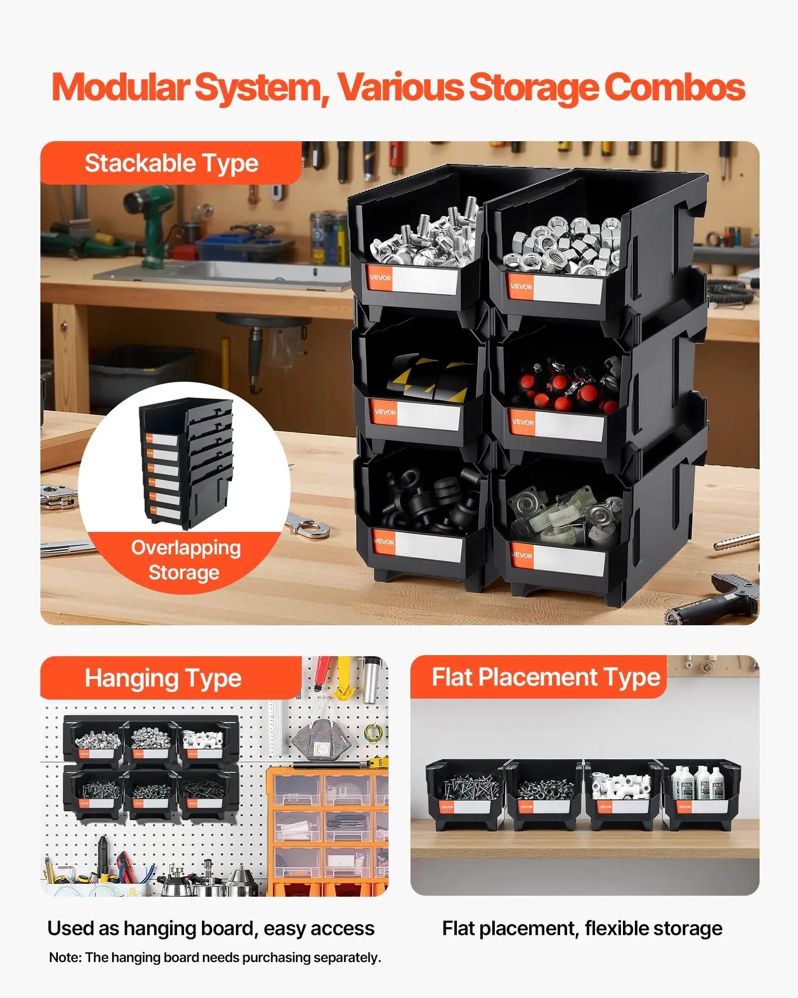 ·Durable & Practical: Crafted from sturdy, easy-to-clean PP plastic with reinforced pillar-style supports, these garage organizer bins can be stacked, hung, or placed flat. No wobbling, no breaking, fully reusable