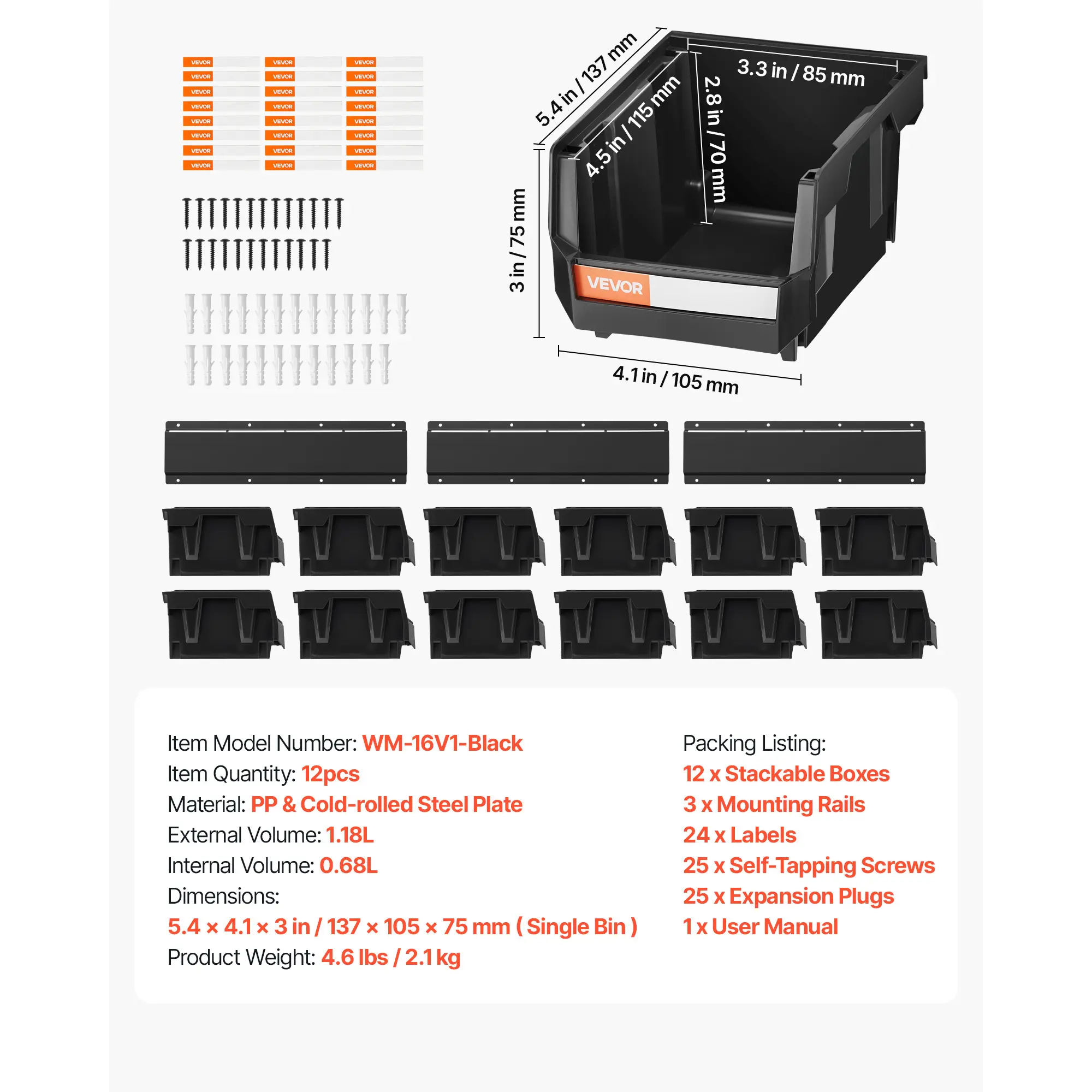 📦 VEVOR Wall Mounted Storage Bins