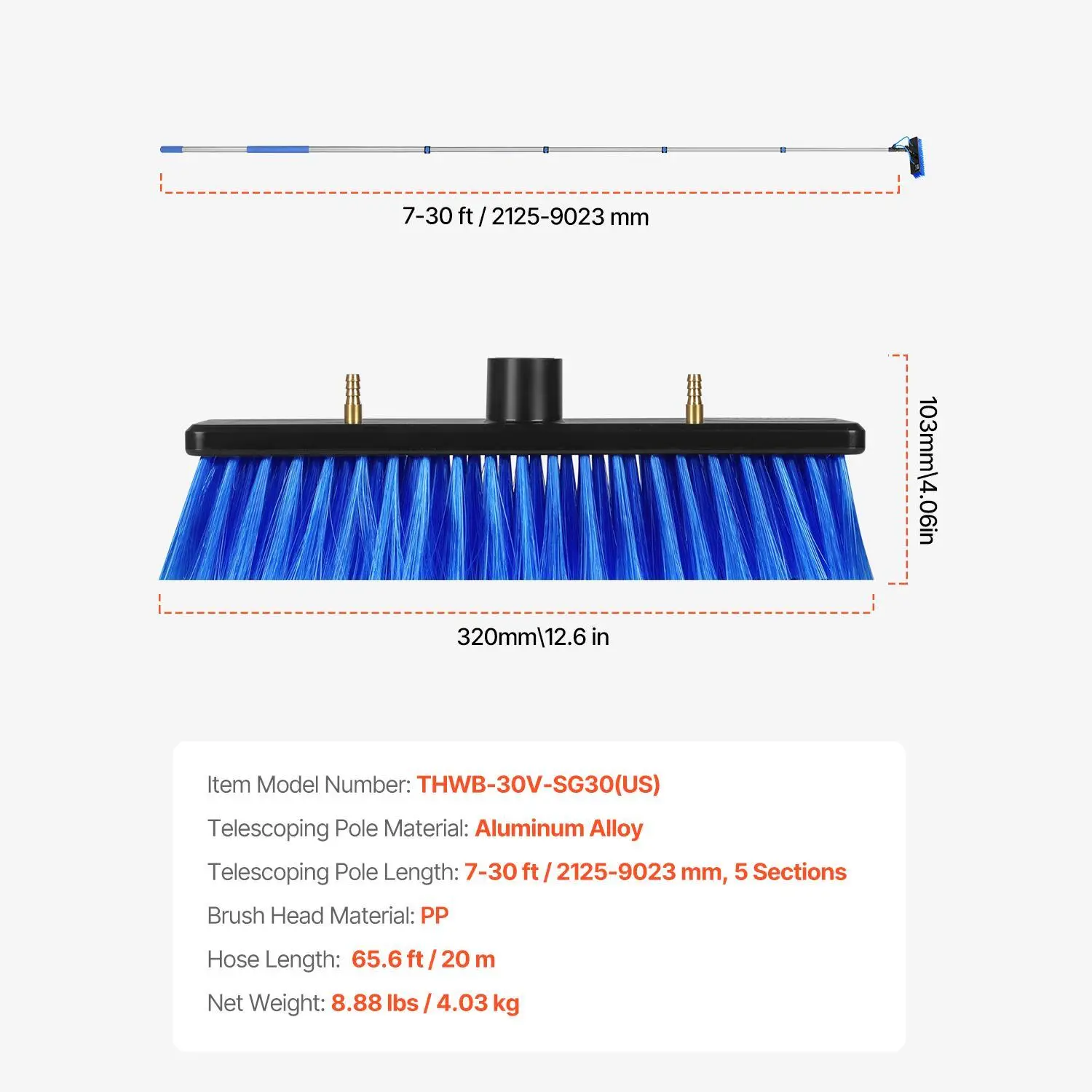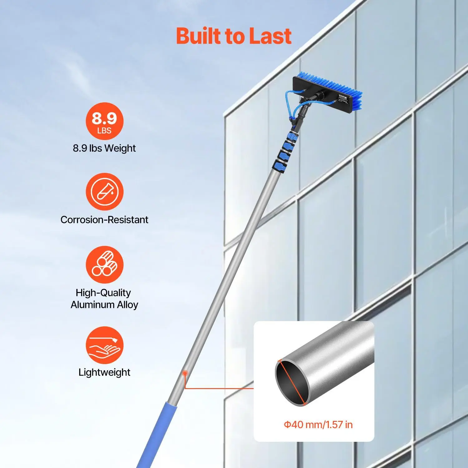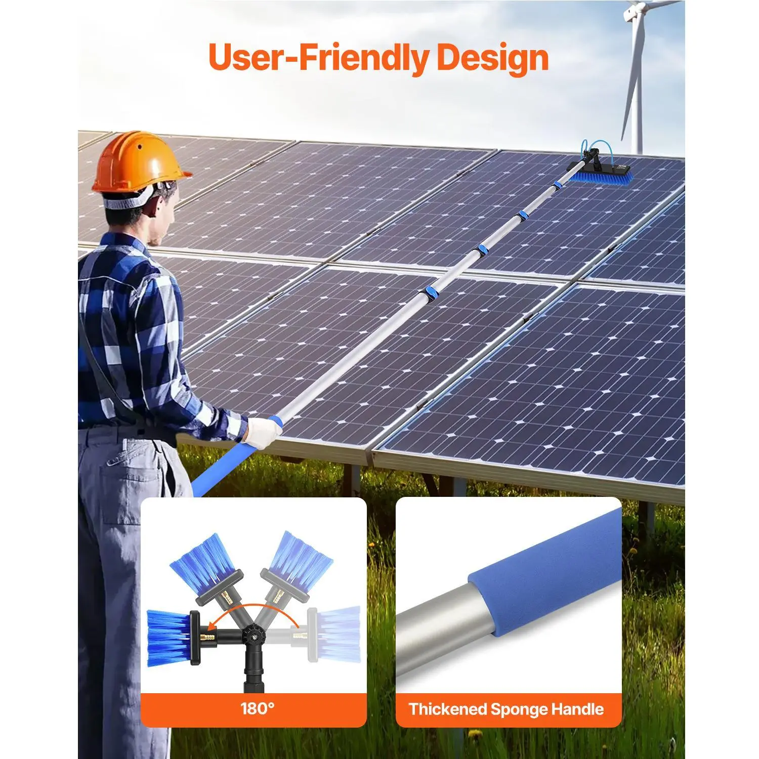 Tired of climbing ladders or struggling to clean your solar panels or windows? The VEVOR Water Fed Pole Kit makes it a breeze! With a 30-foot extendable pole, you can safely reach high spots without risking a fall. The 180° rotatable brush head lets you clean every angle effortlessly, while the soft PP bristles protect your solar panels from scratches and damage. Plus, the included 65.6-foot hose and quick connectors make hooking up to your water source super simple. Whether you’re sprucing up your caravan, deck, or household windows, this lightweight aluminum kit is built tough to handle outdoor conditions and long cleaning sessions. The non-slip sponge handle keeps your grip comfy, so you can clean without fatigue. Ready to make your solar panel and window cleaning faster, safer, and more effective? Grab the VEVOR Water Fed Pole Kit and enjoy sparkling clean surfaces with zero hassle!