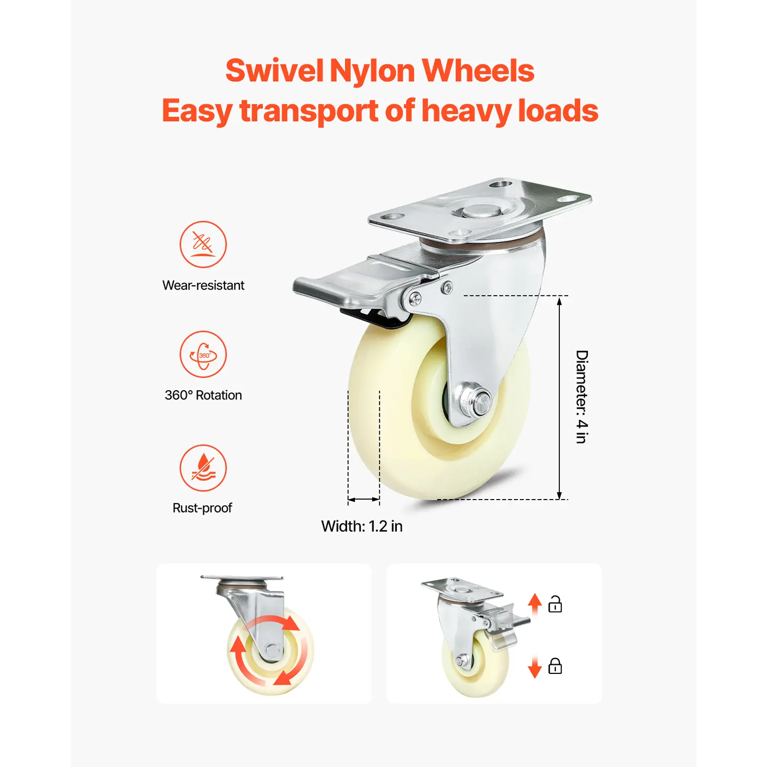 • Durable Nylon Wheels: The nylon wheels are highly durable and load-bearing, enhanced with carbon steel brackets and ball bearings for improved flexibility and durability. The wheels of jet ski dolly can be locked during trailer connection, ensuring firm stability and avoiding sliding.