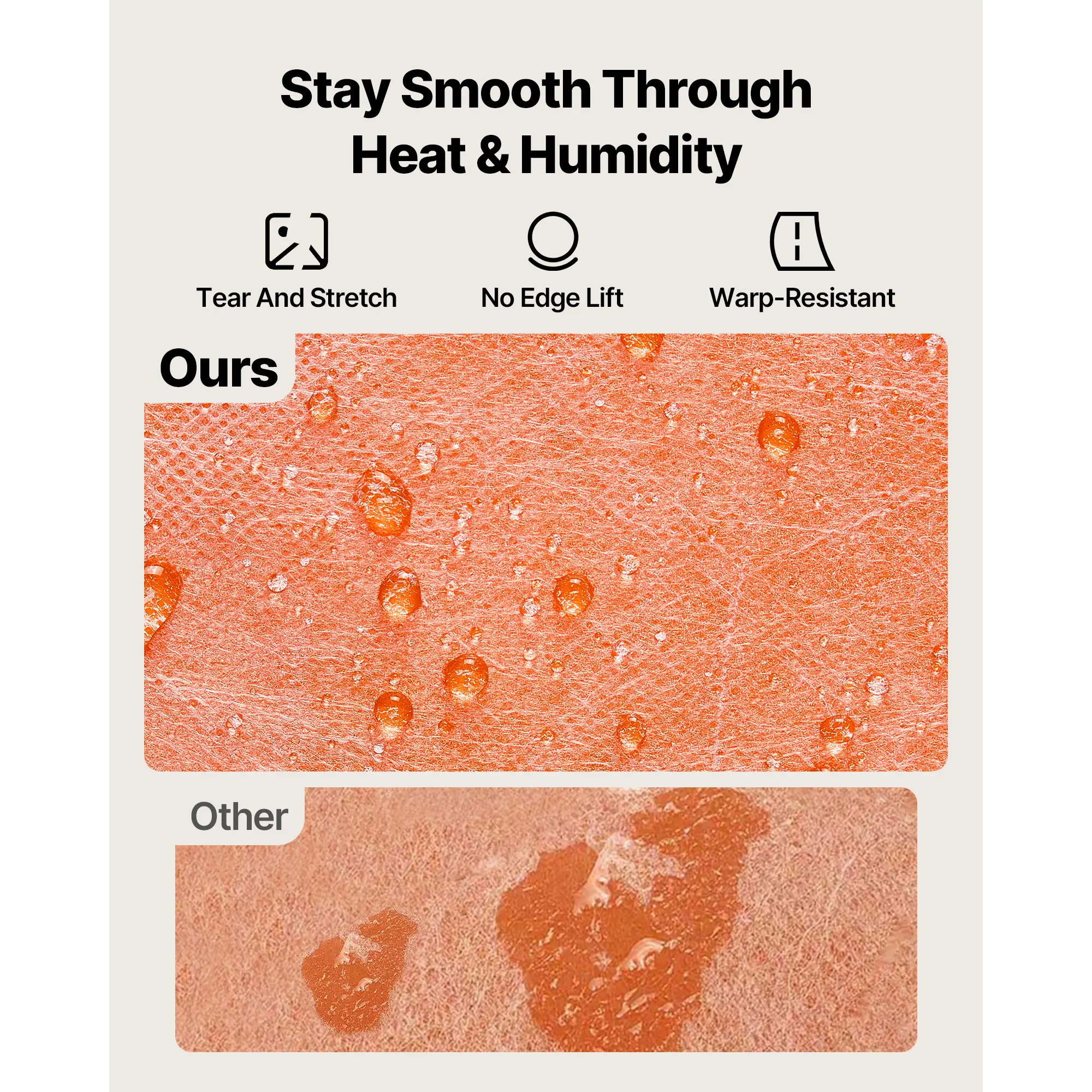• Sturdy and Tear-Resistant: This bathroom membrane remains flexible and flat under steam and temperature changes. Tear-resistant, it avoids bubbling or edge lifting, reduces thermal expansion deformation, and ensures long-lasting and reliable waterproofing