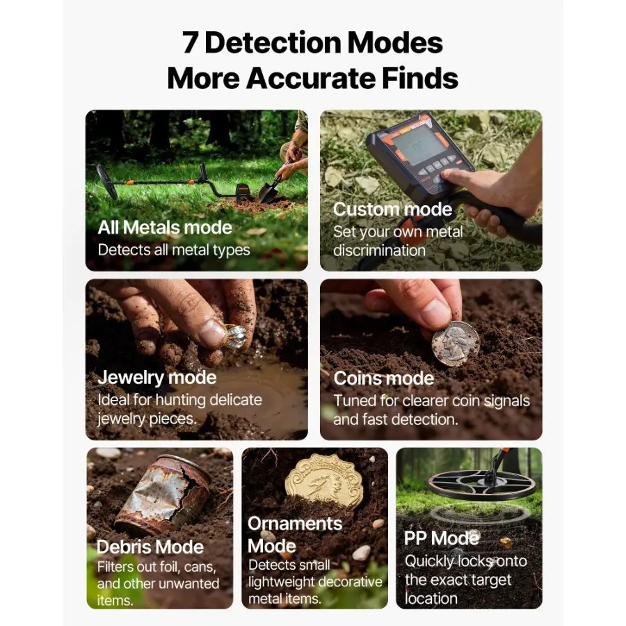 VEVOR Waterproof Metal Detector, 12, Professional High Accuracy Gold Detector for Adults, with Display, Wireless Headphones, 7 Modes, Adjustable Length, for Detecting Gold Treasure Hunting, IP68VEVOR Waterproof Metal Detector, 12", Professional High Accuracy Gold Detector for Adults, with Display, Wireless Headphones, 7 Modes, Adjustable Length, for Detecting Gold Treasure Hunting, IP68 Search Coil Telescopic Handle FSTN Display Ready for Outdoor Conditions Efficient,