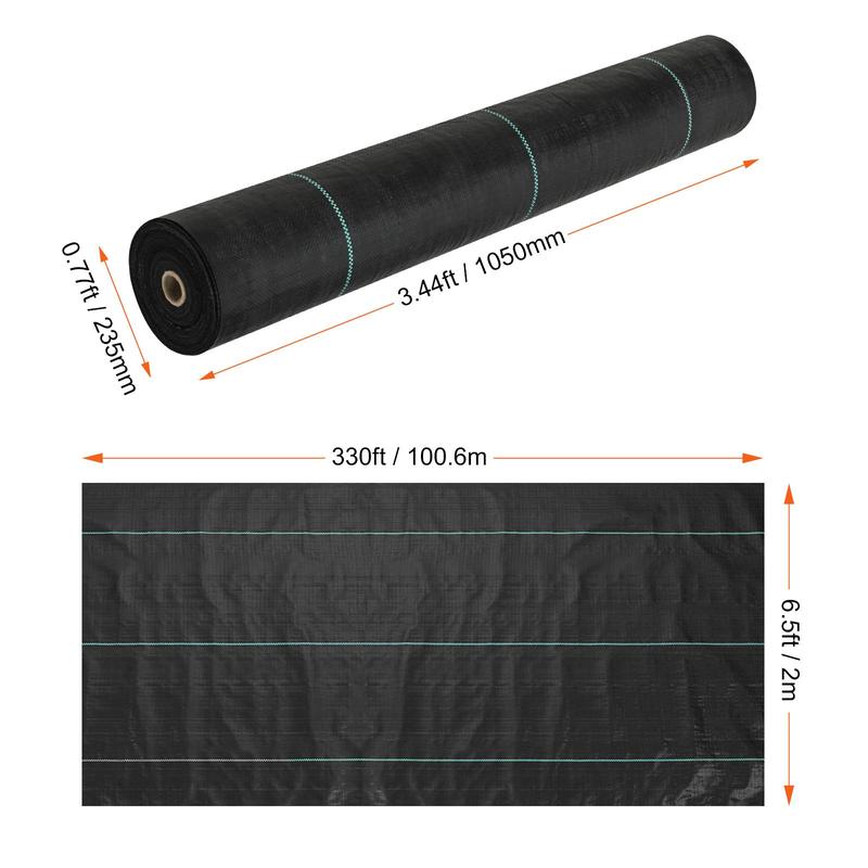 • Heavy Duty Weed Barrier Fabric: Crafted from 3.2OZ high-density, tear and corrosion resistant polypropylene, VEVOR 6.5 x 330FT woven weed barrier landscape fabric is the preferred choice for agriculture and industry. It ensures superior weed prevention and promotes soil health, keeping your landscaping remain weed-free for an extended period.