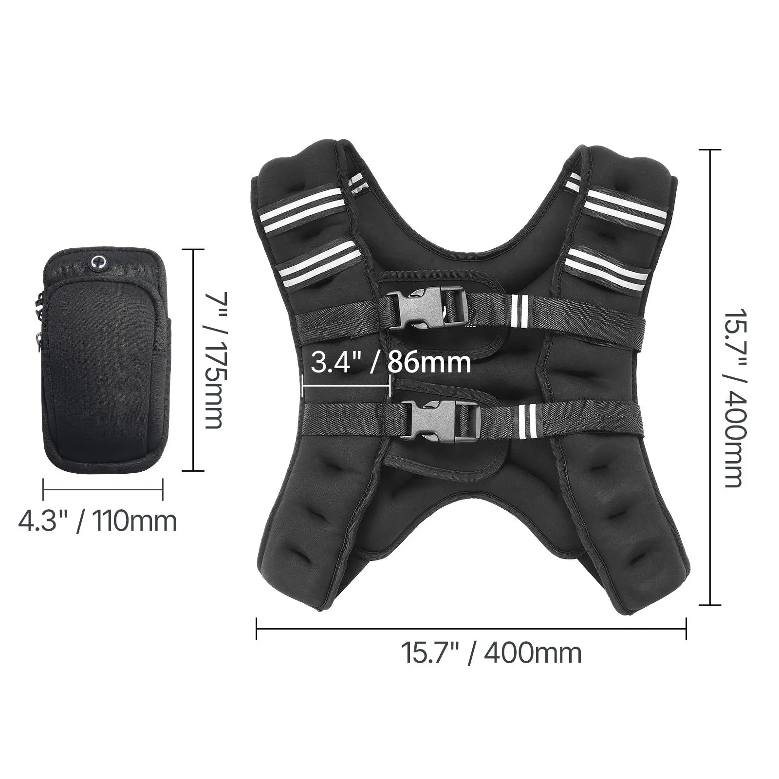 • Dual Storage Pockets: Featuring a front detachable pocket that can be conveniently tied to your arm, and a rear mesh pocket, our weighted vest offers ample storage options. Keep your valuables like phone, keys, and wallet safe.