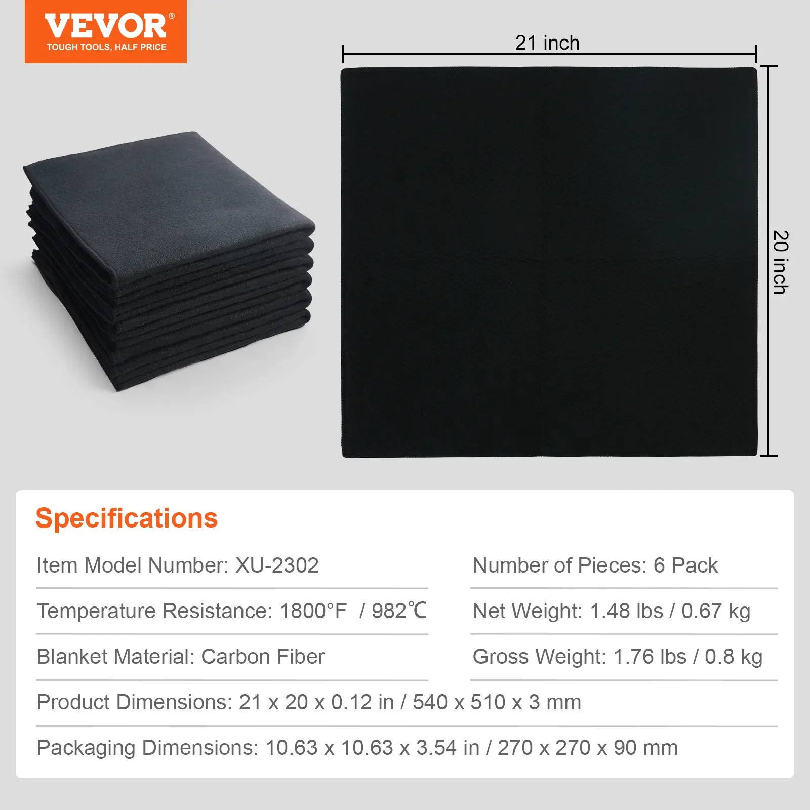 • High Temperature & Flame Retardant: VEVOR 21" x 20" welding blanket offers outstanding heat resistance of up to 1800°F, uneasy to melt or deform even in high-temperature environments. Weld with confidence with effective protection against sparks, flames, and intense heat.