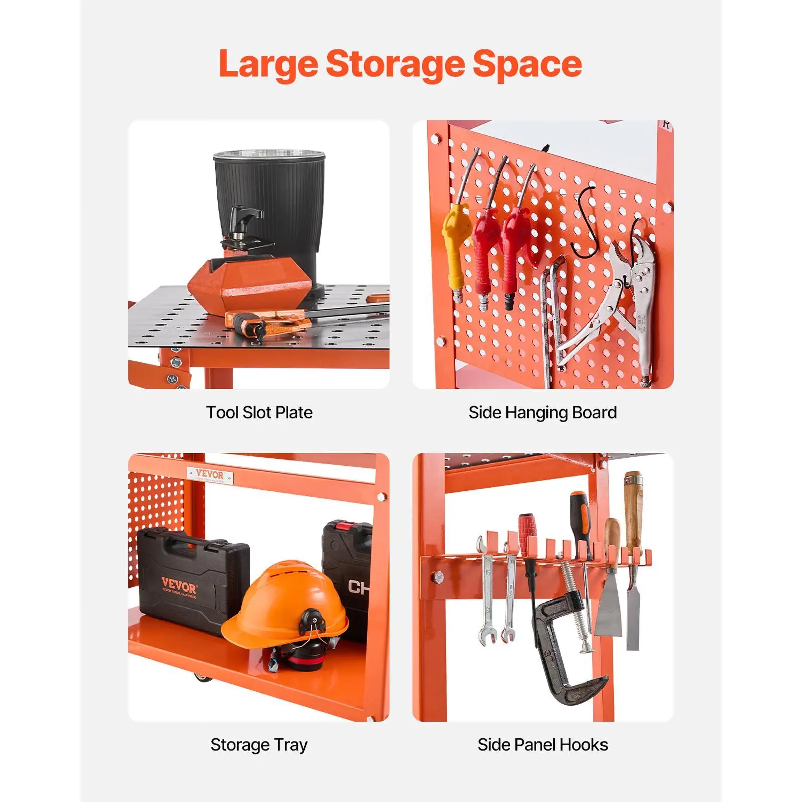 • Welding with Ease: 216 5/8-inch fixture holes makes this welding bench easy to clamp your fixtures, while the innovative double-layer storage board design doubles your storage capacity. Keep your tools within arm's reach with the convenient side tool hanging board and 11 hooks.