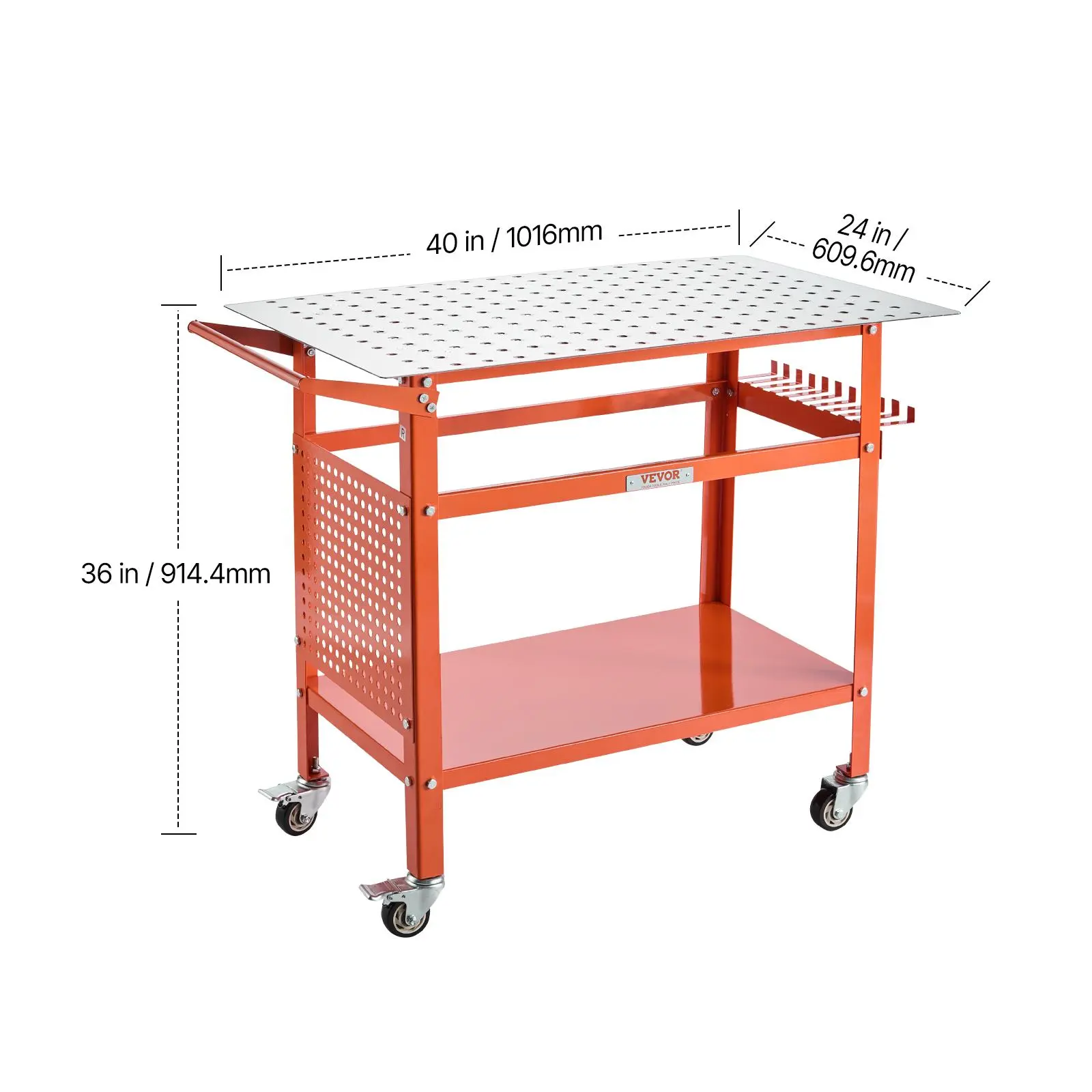 • Achieve Flawless Welds: Whether you're a metal hobbyist or a seasoned professional, the movable welding table offers a wide range of applications. Boasting a spacious desktop area measuring 40" x 24", it provides ample room, allowing you to weld with ease, flexibility, and precision.