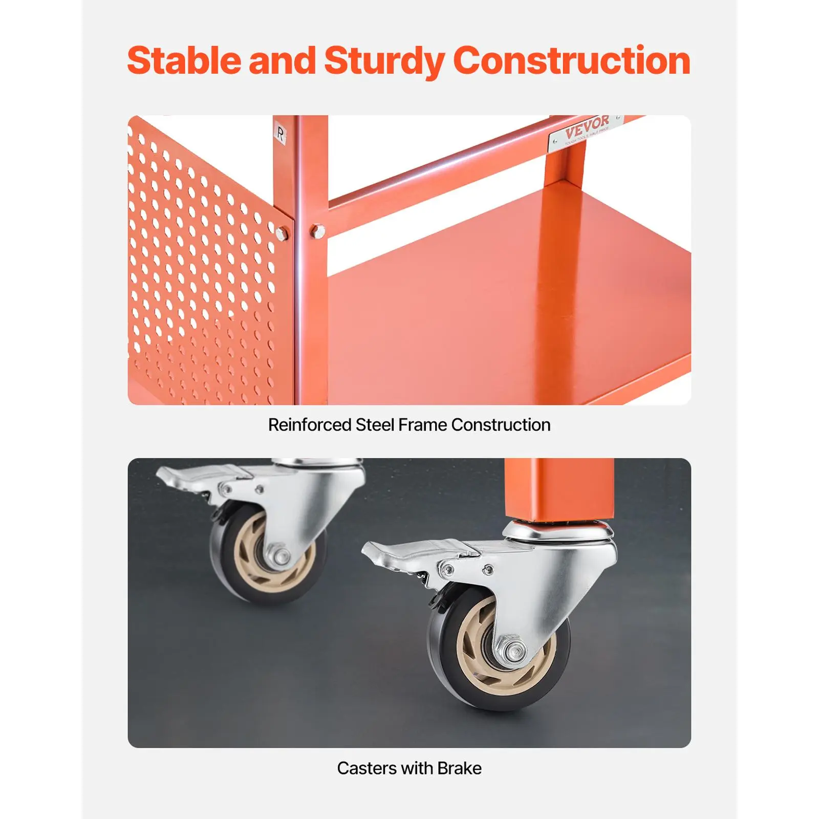 • Easy to Move: This welding work bench is equipped with 4 sturdy wheels for effortless mobility, including 2 with reliable brakes for added safety and stability. Whether you're working in the garage, workshop, or on-site, it ensures smooth maneuverability and secure positioning.