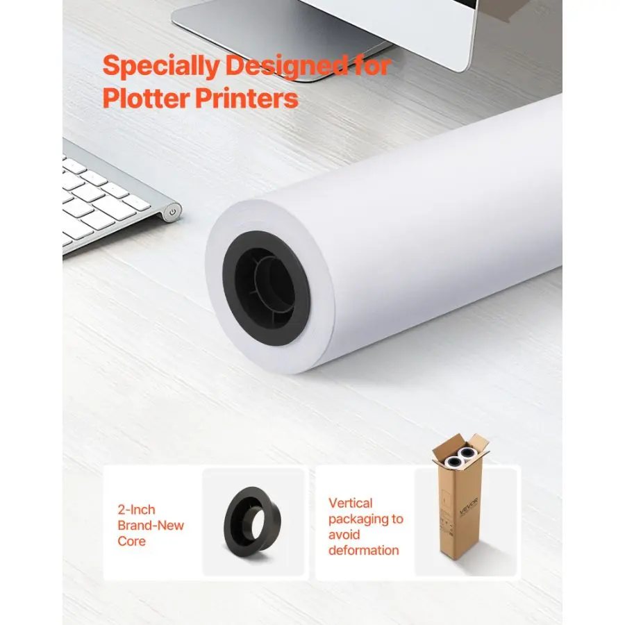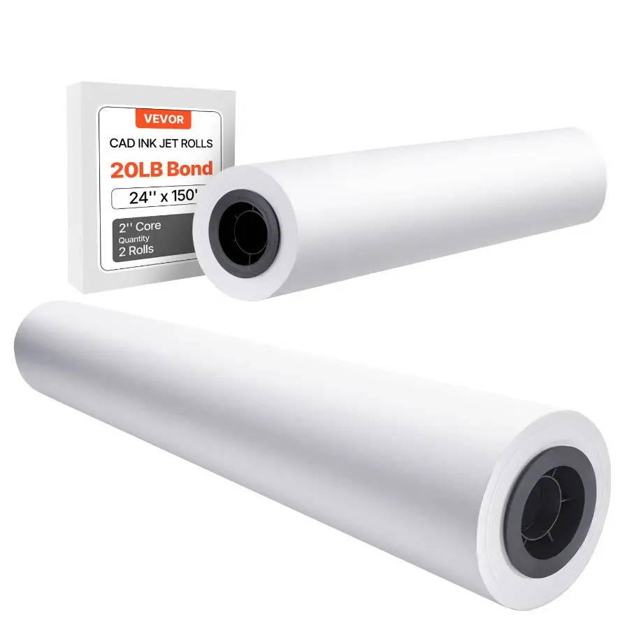VEVOR Wide Format Paper, 24 inx 300 ft Plotter Roll, 2 Rolls CAD Bond Rolls with 2 in Core, 20 LB Bond Paper Rolls, Ideal for CAD Drawings, Engineering Plans, GIS Maps, and Architectural DesignsVEVOR Wide Format Paper, 24 in x 150 ft Plotter Roll, 2 Rolls CAD Bond Rolls with 2 in Core, 20 LB Bond Paper Rolls, Ideal for CAD Drawings, Engineering Plans, GIS Maps, and Architectural Designs