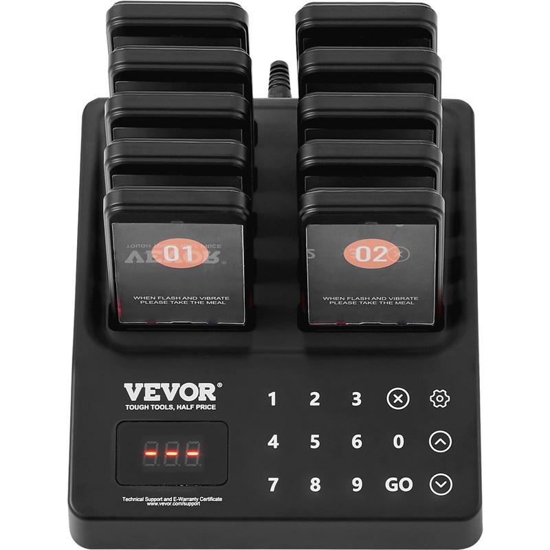 5. VEVOR Restaurant Pager System, Wireless 400m Long Range Lineup Waiting Queue Signal, Guest Customer Calling Beepers with Vibration & Flashing, 10 Buzzers for Food Truck, Church, Nursery, Hospital