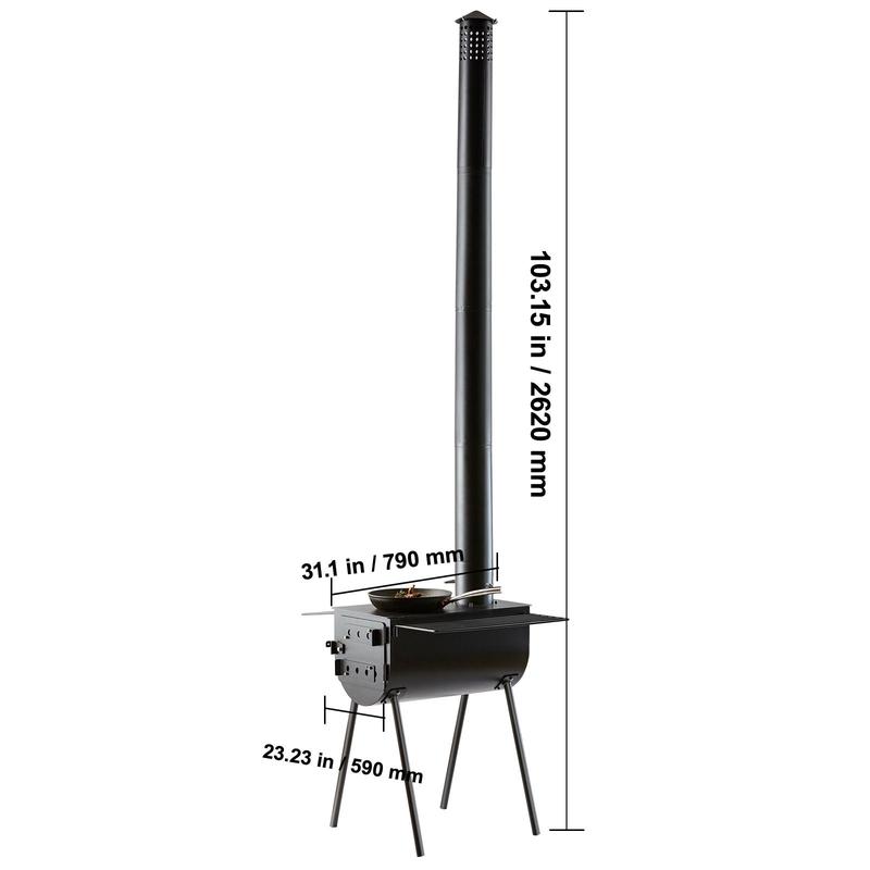 • 3 mm Reinforced Panels: Crafted with rust-resistant alloy steel, our wood burning stove can withstand high temperatures and rough outdoor conditions. The 3mm / 0.12" thick panels prevent deformation even when carrying heavy objects, ensuring durability and longevity.