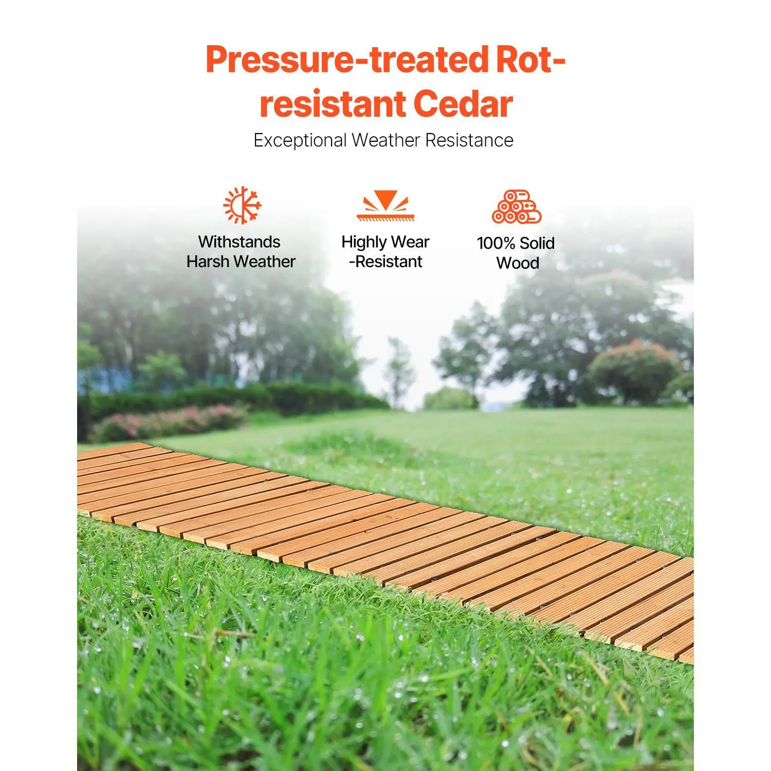 • Durable Cedar Material: Crafted from pressure-treated cedar, this garden walkway path is built for long-term outdoor use, featuring excellent weather resistance and a non-slip surface to prevent accidents in wet conditions.