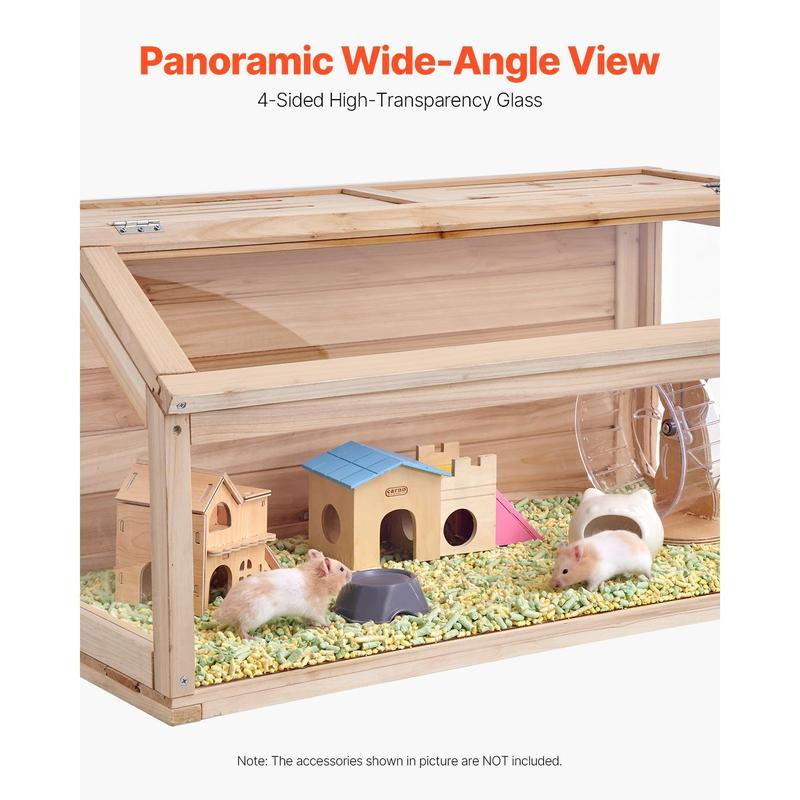 ·Security & Durability: Crafted from strong, high-density natural fir wood and high-transparency acrylic panels, this hamster cage ensures a secure experience. It is the ideal choice for pet owners who prioritize their pets' well-being.