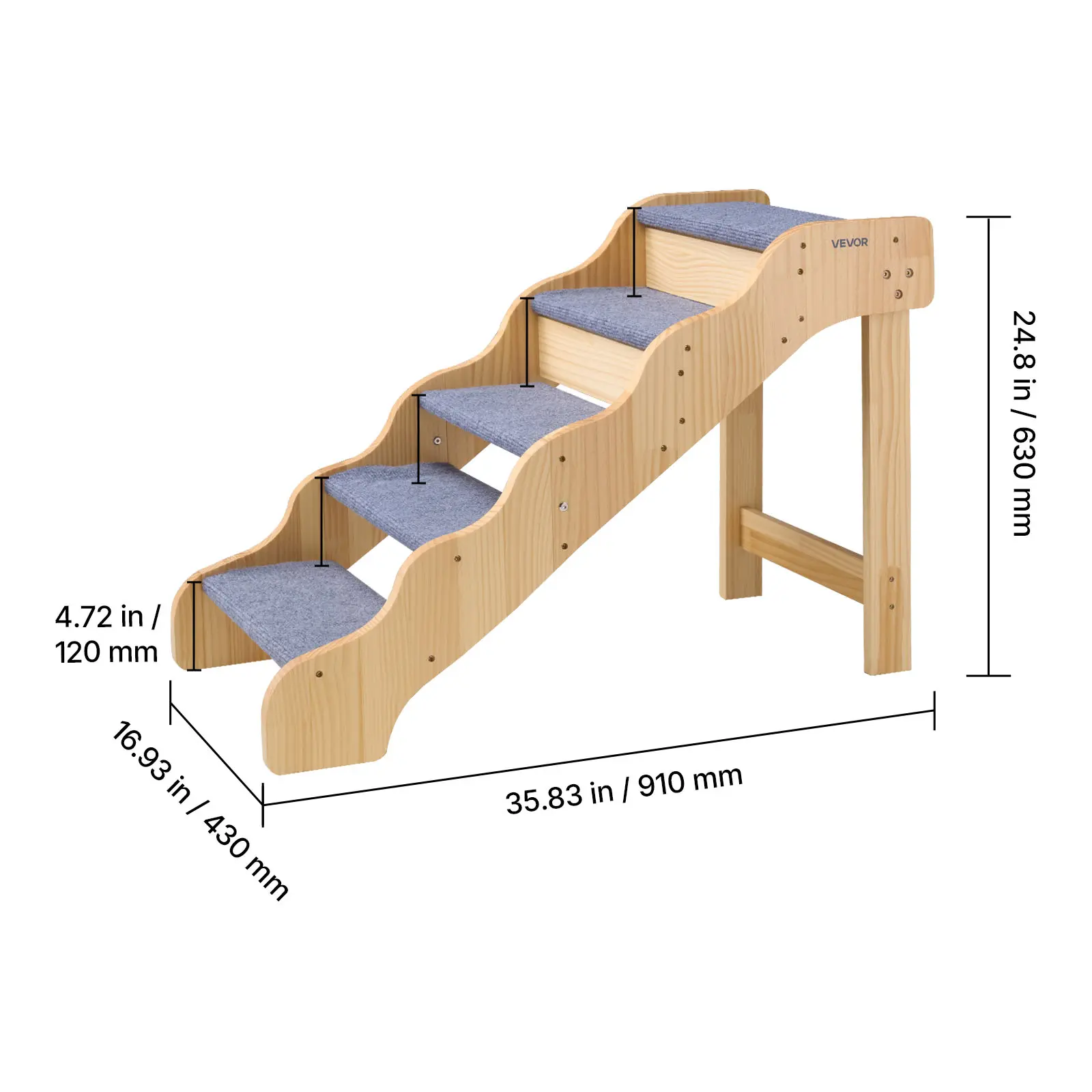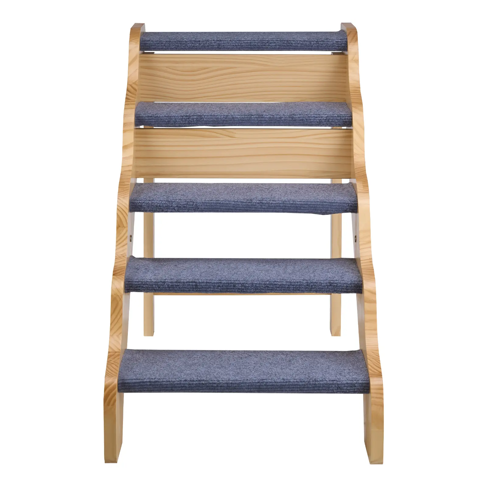 • Sturdy and Secure Support: The dog stairs is built with a strong wooden frame that supports pets up to 150 lbs (68 kg). Large screws add stability, and non-slip rubber pads on the bottom avoid wobbling while helping pets climb securely