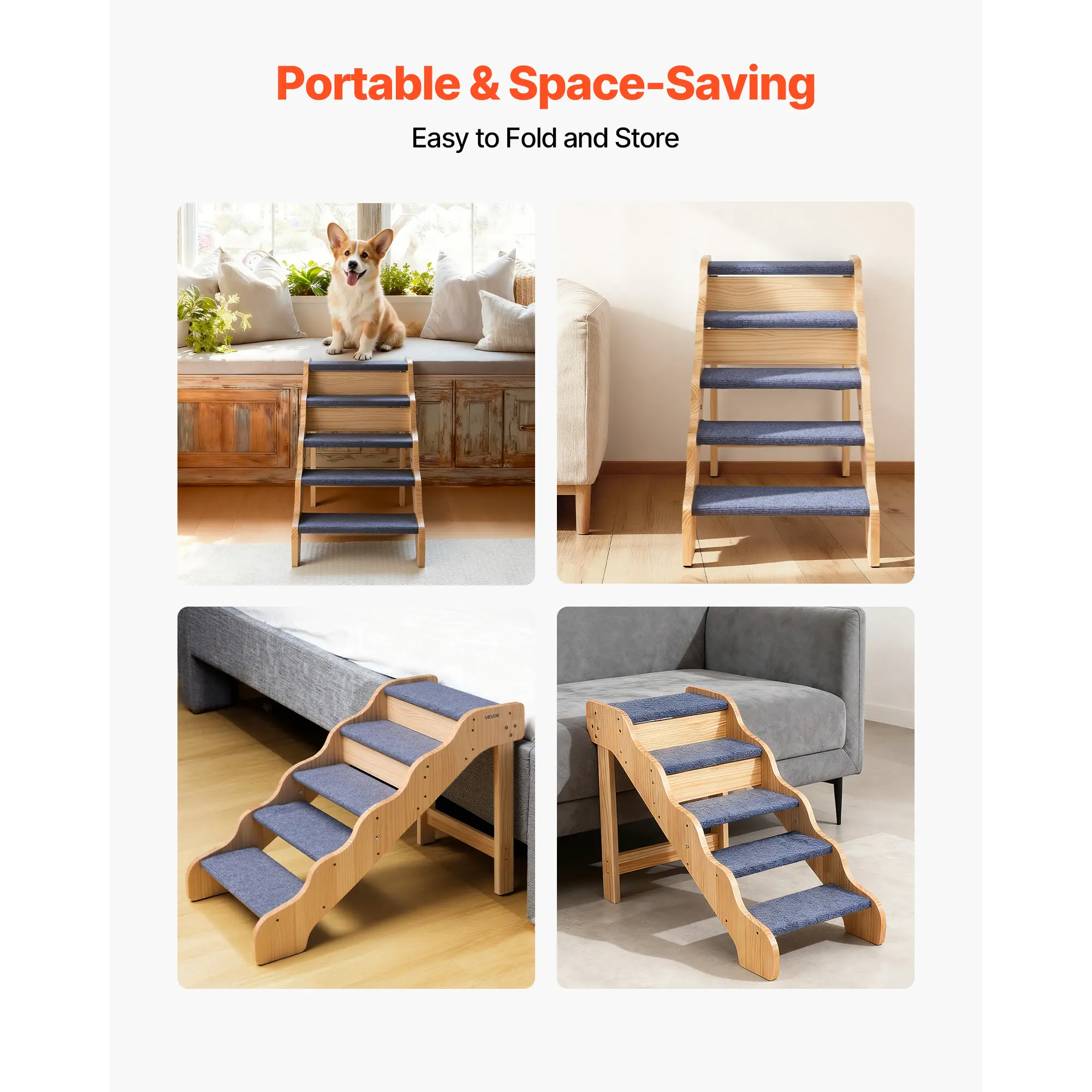 • Comfortable, Non-Slip Surface: The dog stairs for bed feature a soft polyester fabric cover that provides excellent traction for paws. It helps pets walk securely, avoids slipping, and makes climbing easier for your pets